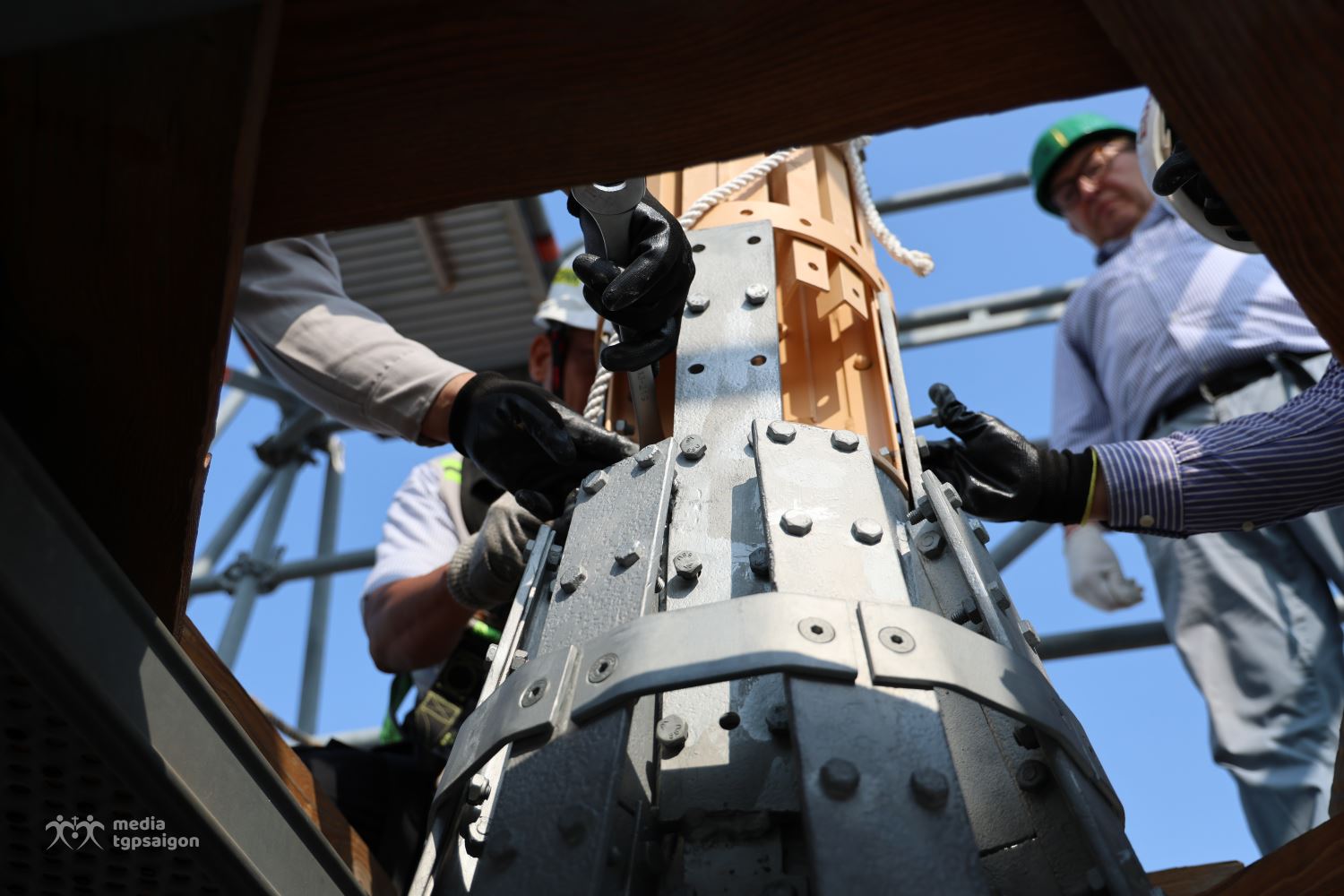 Đặt hai Thánh giá lên đỉnh tháp kẽm Nhà thờ Chính tòa Đức Bà Sài Gòn (19-3-2026)