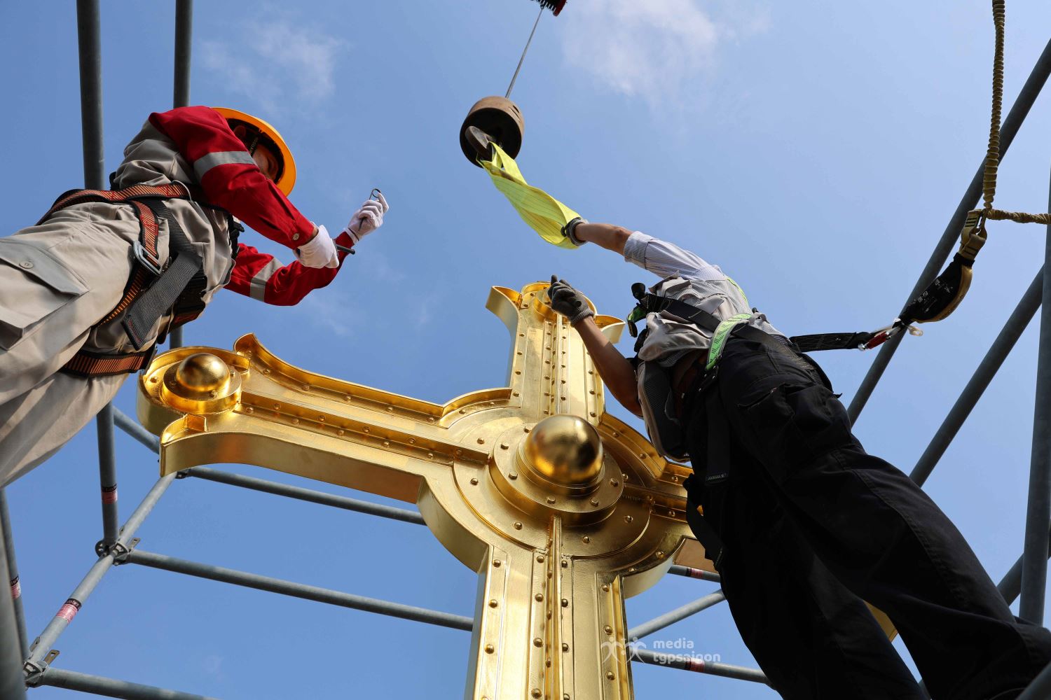 Thời khắc đặt Thánh giá trên đỉnh tháp kẽm