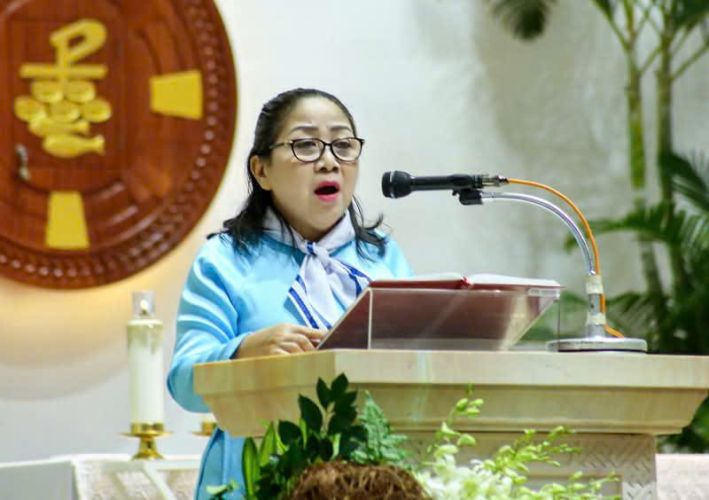 Sau đó, nghi thức Tận hiến của một hội viên Con Đức Mẹ - chị Maria Martine Hoàng Thị Thanh Hương - được cử hành trang trọng, thêm niềm vui cho ngày lễ.