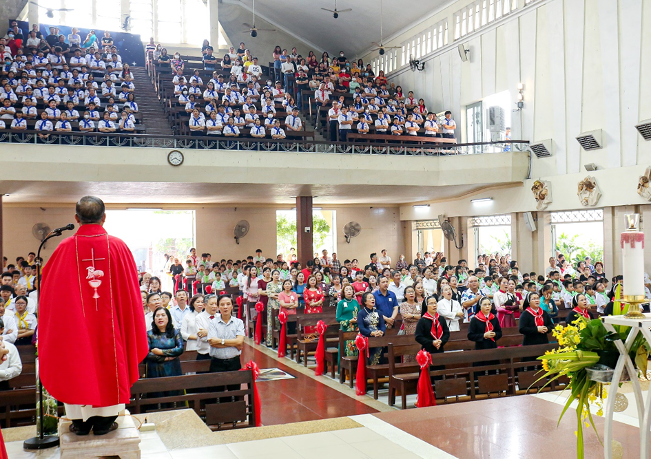 Tham dự Thánh lễ có các tu sĩ nam nữ, đông đảo các em thiếu nhi và huynh trưởng, các thành viên HĐMV, phụ huynh cùng các thành phần dân Chúa.