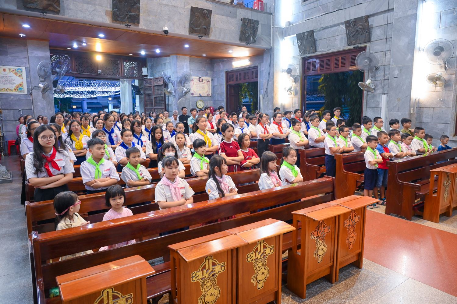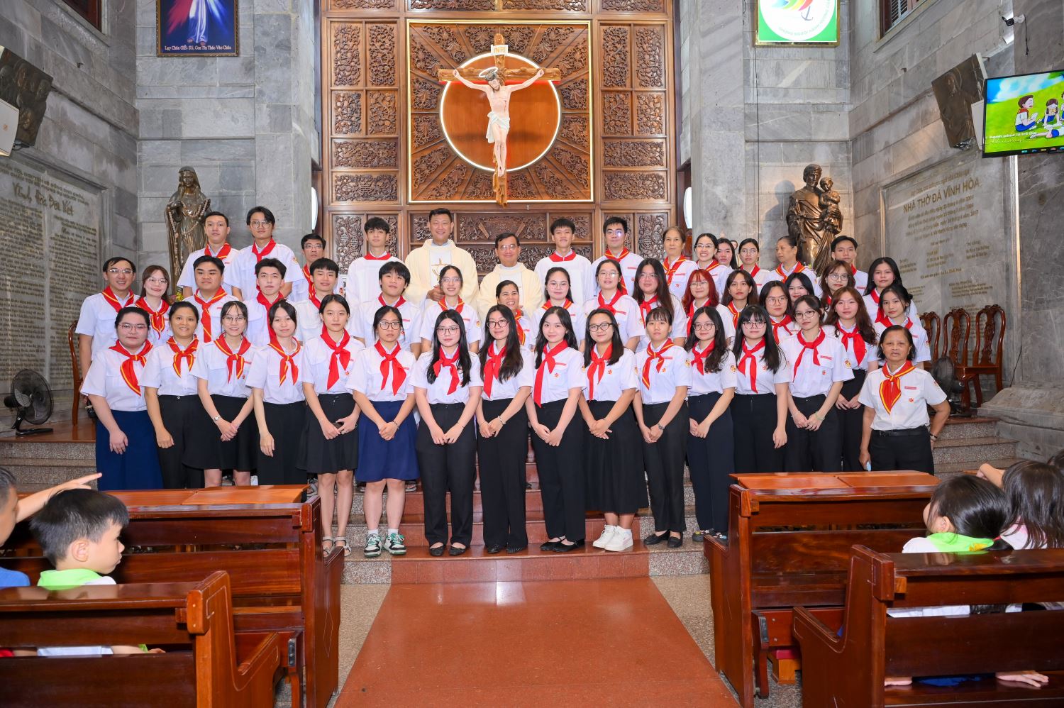Thánh lễ kết thúc lúc 18g30, cộng đoàn hân hoan lãnh nhận ơn bình an và lưu lại tấm hình kỷ niệm trước thềm cung thánh. Trước khi ra về, các anh chị huynh trưởng - giáo lý viên đã trao cho mỗi em thiếu nhi tham dự Thánh lễ một hộp bánh nhân dịp mừng bổn mạng.