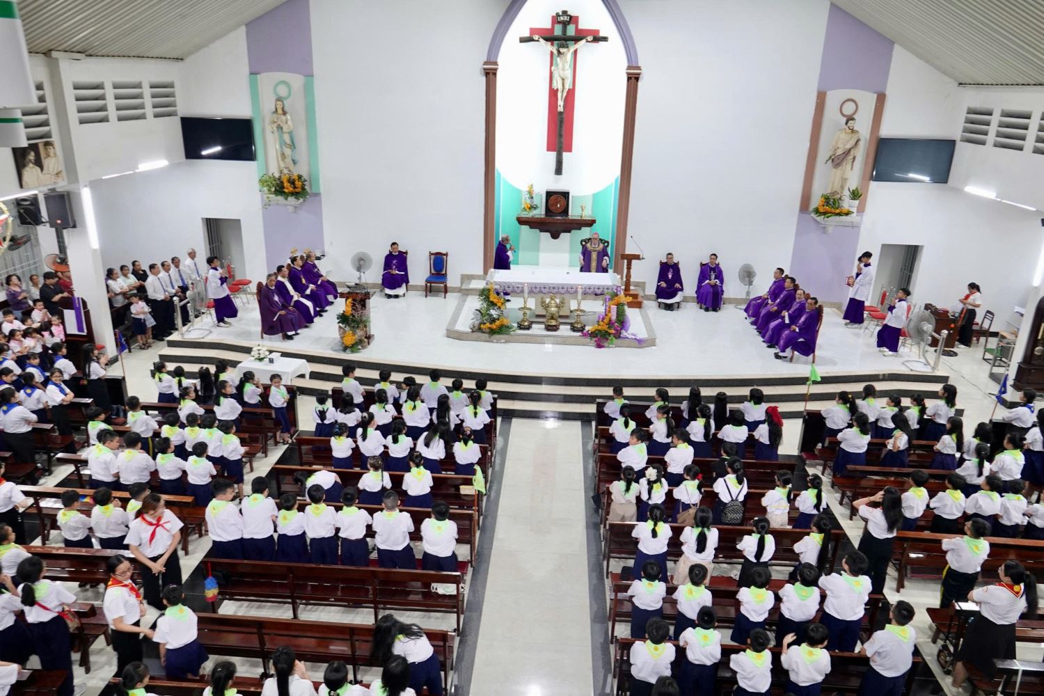 Thánh lễ khởi sự với đoàn rước từ cuối nhà thờ tiến lên cung thánh.