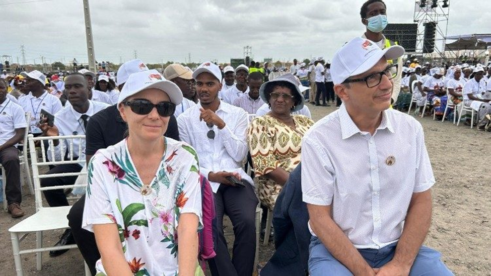Eleonora Biasotto và Sergio Facchini tại Thánh lễ của Đức Giáo hoàng ở Kilamba ngày 19/4/2026