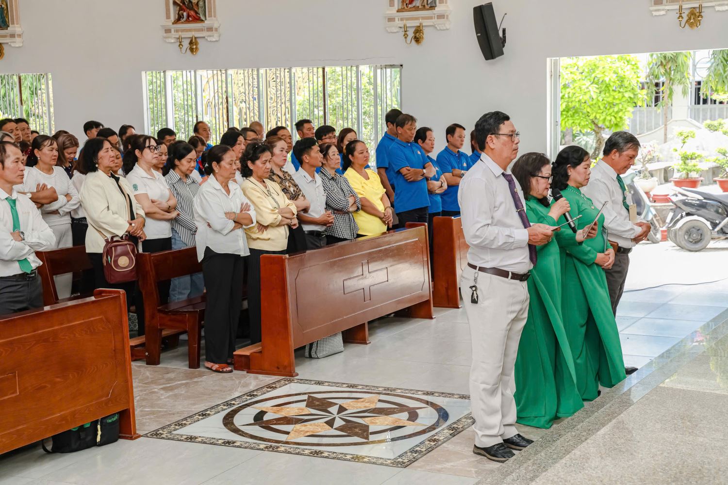 Ngay từ 7g30 sáng, Ban Tổ chức đã hiện diện trước sân thánh đường để đón tiếp các linh mục, quý chức và các Song Nguyền. Sau những phút gặp gỡ thân tình đầu năm, mọi người cùng tiến vào nhà thờ tham dự giờ sinh hoạt do Linh mục Tân Tổng Linh Nguyền chủ trì.