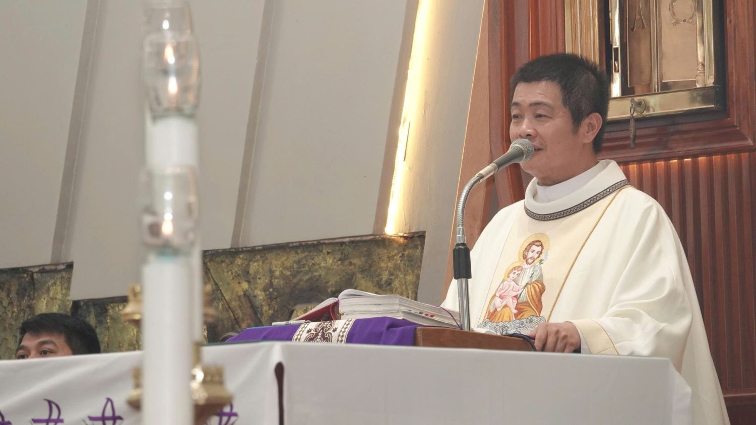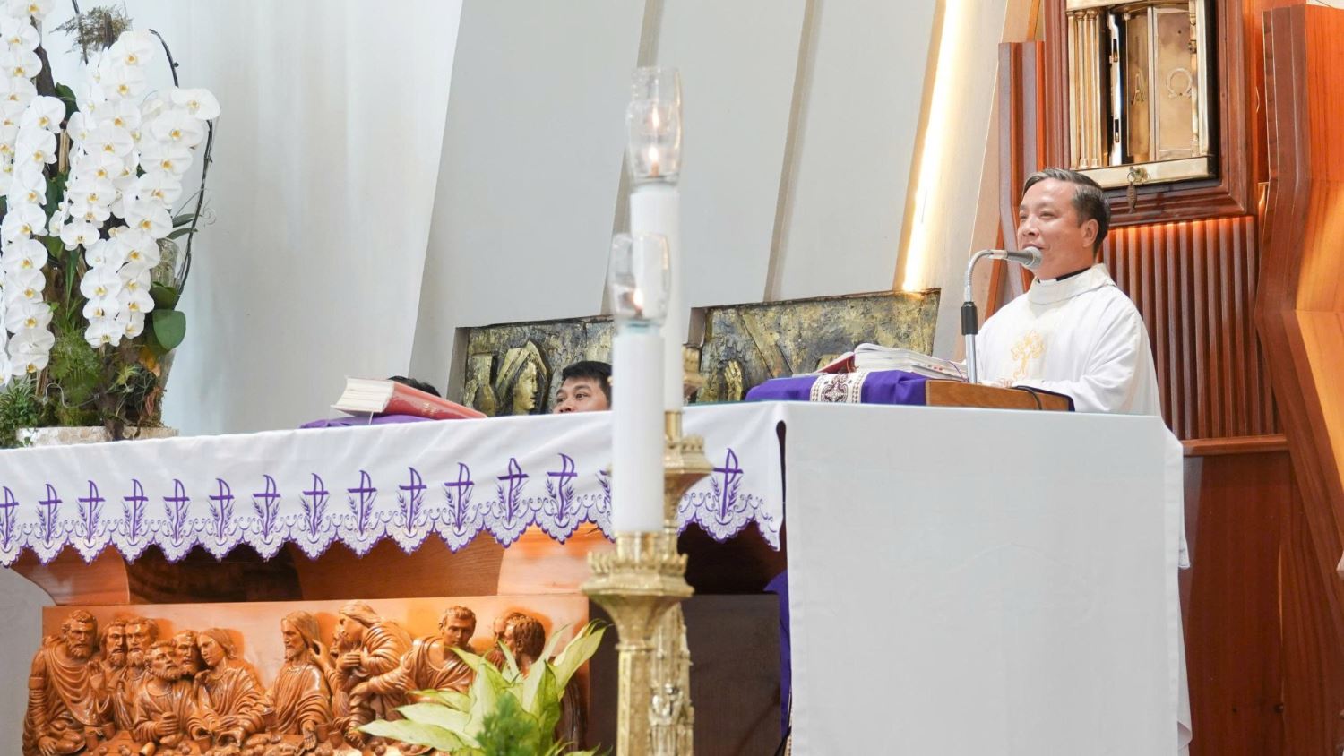 Cha chủ sự đọc đoạn Tin Mừng theo Thánh Matthêu (Mt 4,1-11) nói về việc Chúa Giêsu chịu cám dỗ trong hoang địa.