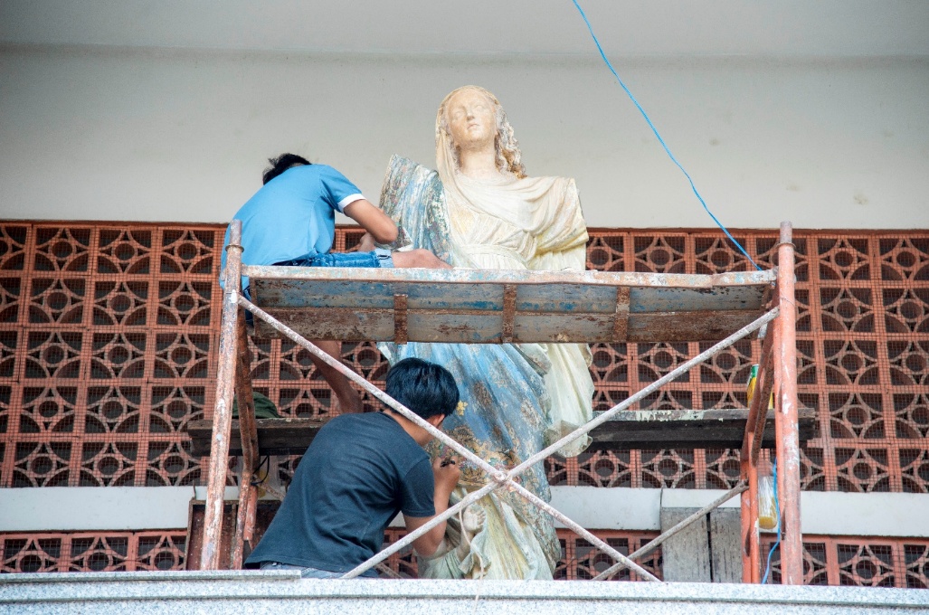 TGPSG -- Tiếng chuông nhà thờ đổ nhịp đều đặn trước giờ lễ chiều, phảng phất trong không gian một mùi sơn mới lẫn với hương nhang trầm ngoài sân nhà thờ. Giữa những tất bật của mọi người vào thời điểm cuối ngày và cuối năm, một cuộc "hồi sinh" lặng lẽ đang diễn ra trên những giàn giáo cao trong sân nhà thờ. Ở đó, có những chàng trai trẻ không chỉ cầm cọ để tô điểm, mà đang chuyện trò với lịch sử qua từng vết nứt của thời gian.