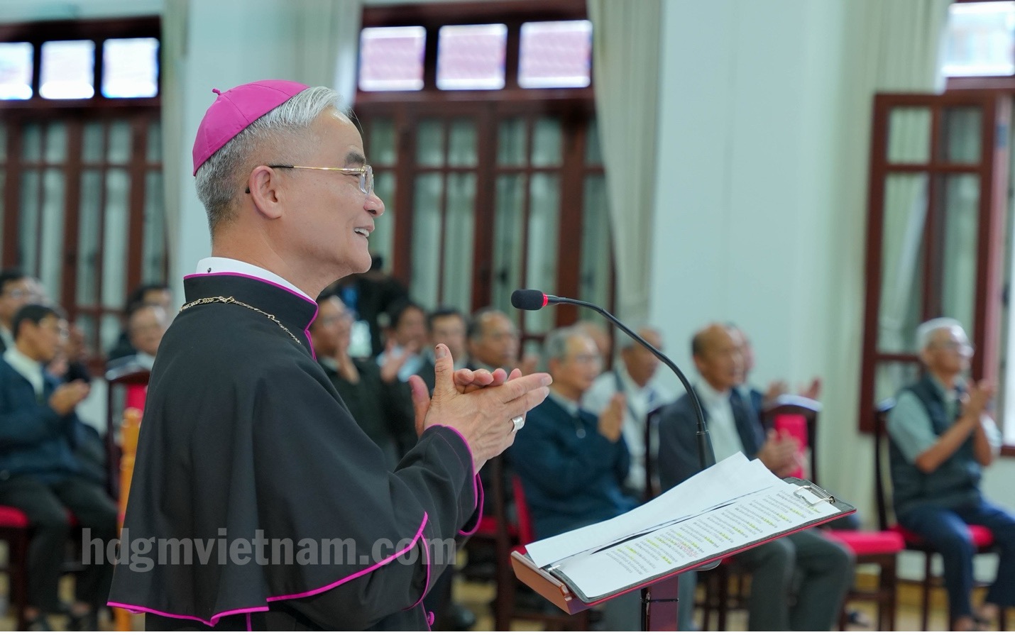“Hội Thánh Việt Nam đang đối diện với nhiều thách đố trong đời sống đức tin và công cuộc truyền giáo. Nhưng với niềm tin tưởng vào ơn soi sáng của Chúa Thánh Thần, chúng ta cùng nhau bước đi trong hiệp thông, tham gia và sứ vụ, để hạt giống Tin Mừng tiếp tục nảy nở trên cánh đồng Việt Nam.”