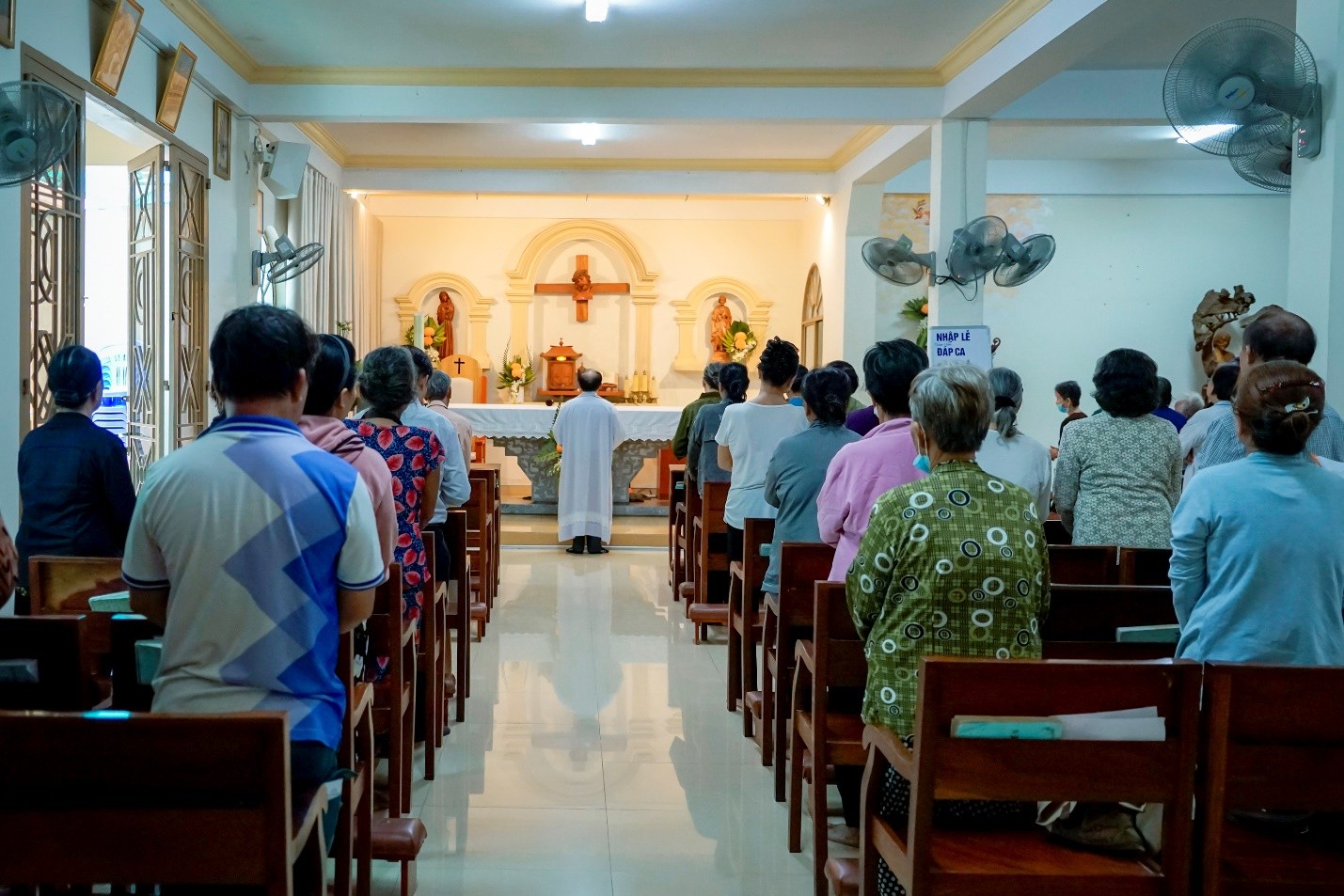 Đúng 16g30, bài ca nhập lễ do ca đoàn Ave Maria và cộng đoàn hát vang, đoàn rước gồm quý cha đồng tế và Hội đồng Mục vụ giáo xứ tiến vào thánh đường. Trước Thánh lễ, cha chánh xứ giới thiệu thành phần tham dự và nói về ý nghĩa của Thánh lễ.