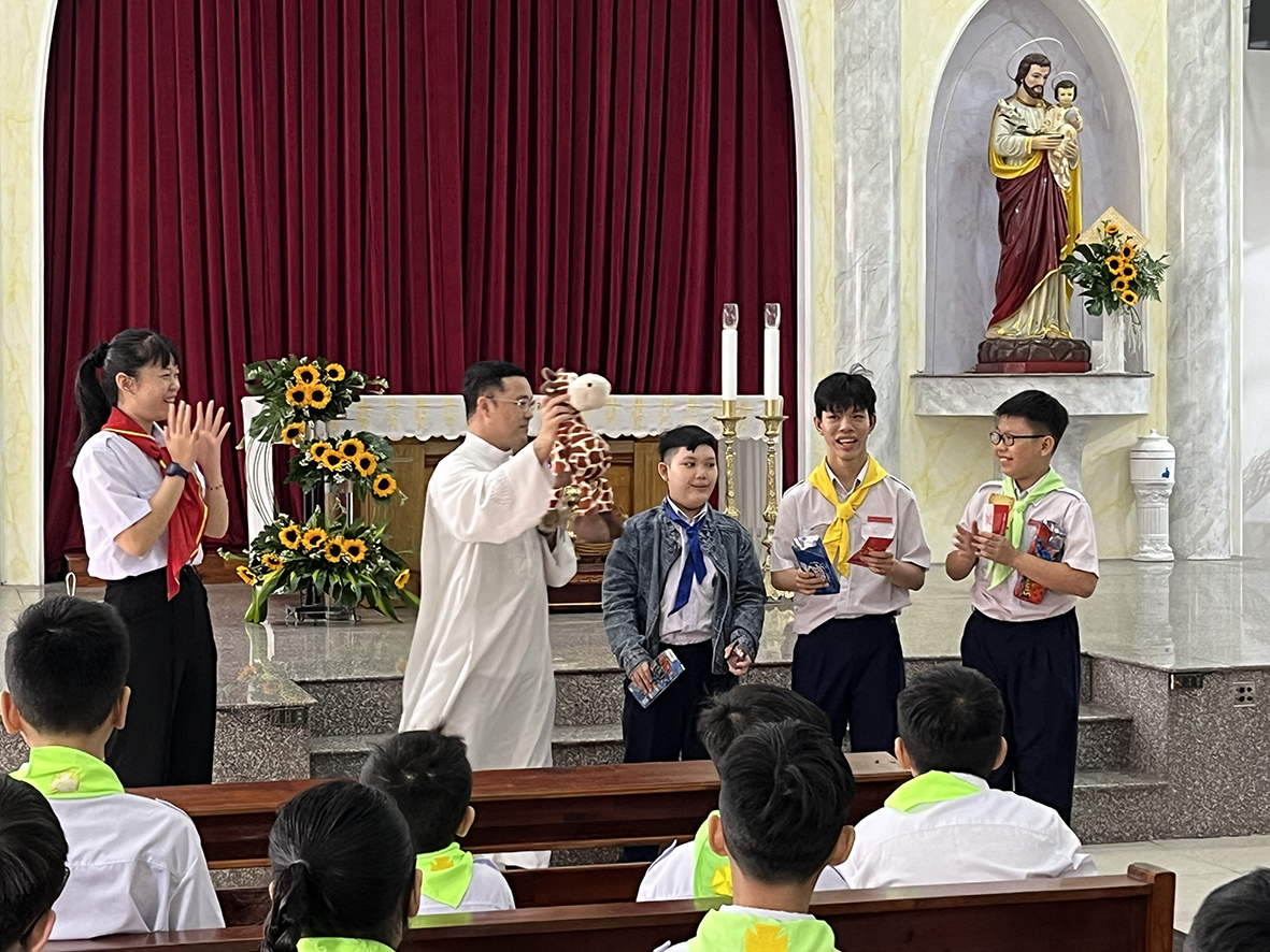 Hiệp dâng Thánh lễ có các nữ tu Dòng Con Đức Mẹ Phù Hộ (Salêdiêng nữ Don Bosco), khoảng 200 em TNTT cùng các anh chị Giáo lý viên, Hội đồng Mục vụ, quý phụ huynh và cộng đoàn giáo xứ.