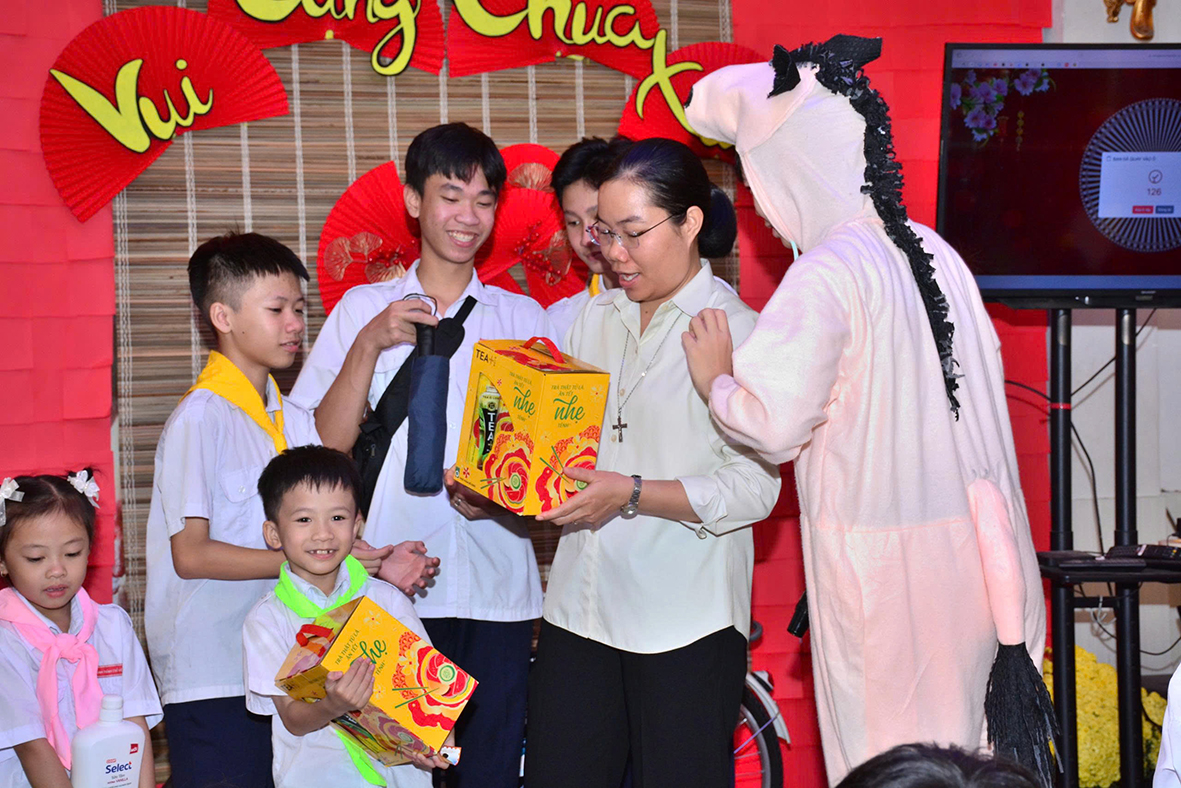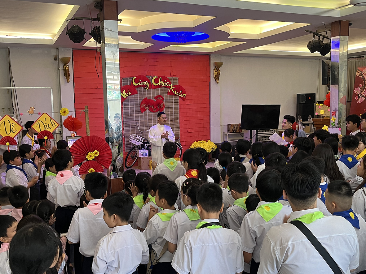 Sau Thánh lễ, các nữ tu phụ trách cùng các anh chị Huynh trưởng - Giáo lý viên và các em TNTT đã có những lời chúc Xuân và bài múa “Tết nhà mình, Xuân ơi ở lại chơi” thật dễ thương, tràn đầy yêu mến, kính dâng lên linh mục Gioan Baotixita, người luôn yêu thương, chăm sóc và kiên nhẫn đồng hành cùng cộng đoàn, cách riêng là gia đình giáo lý TNTT của giáo xứ.