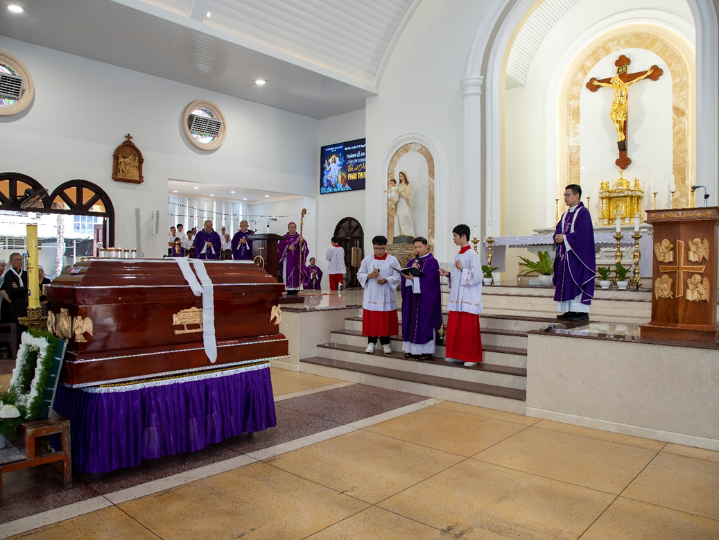 Thánh lễ kết thúc lúc 10g00 cùng ngày. Linh cữu bà cố được di quan và an táng tại nghĩa trang Đất Thánh giáo xứ Bùi Môn, hạt Hóc Môn.