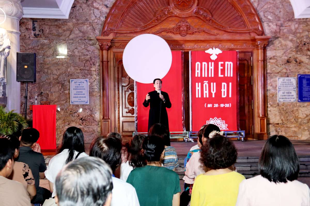 Lm phó Giuse tiếp tục với chủ đề cầu nguyện “Chúa Giêsu sai các môn đệ”. Ngài đọc và chia sẻ đoạn phúc âm theo Thánh Luca (Lc 10, 1-9), xen kẽ với những ca khúc “Ca khúc tạ ơn” “Lắng nghe lời Chúa” “Từ rất xa khơi”