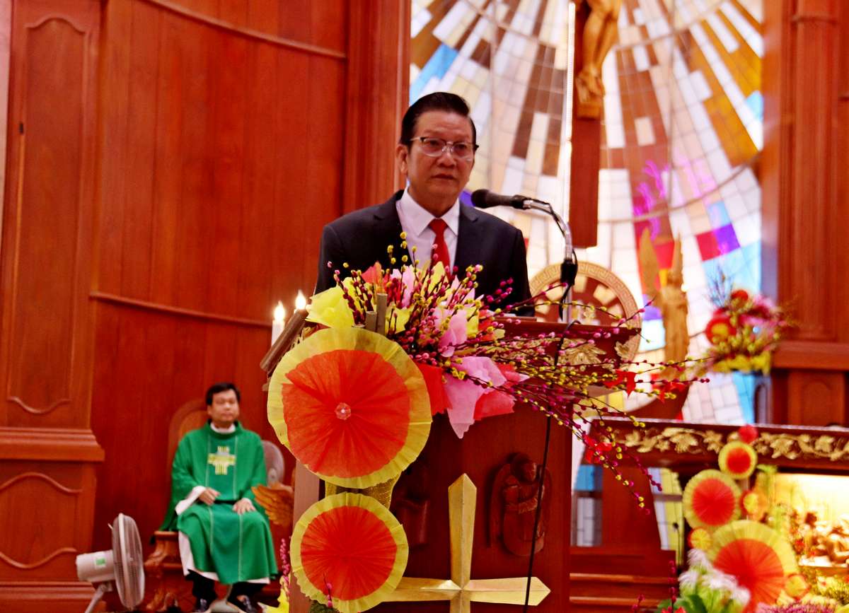 Trước khi ban phép lành cuối lễ, Lm chánh xứ Giuse đã có đôi lời tâm tình, bày tỏ lời cảm ơn đến tất cả mọi người hiện diện trong Thánh lễ. Cha chia sẻ niềm vui và sự ấm áp tình người khi thấy rất đông cộng đoàn tham dự. Sau Thánh lễ, có tiệc mừng tất niên, mọi người cùng tham dự để chia sẻ với nhau tấm bánh bẻ ra trong tình hiệp thông.