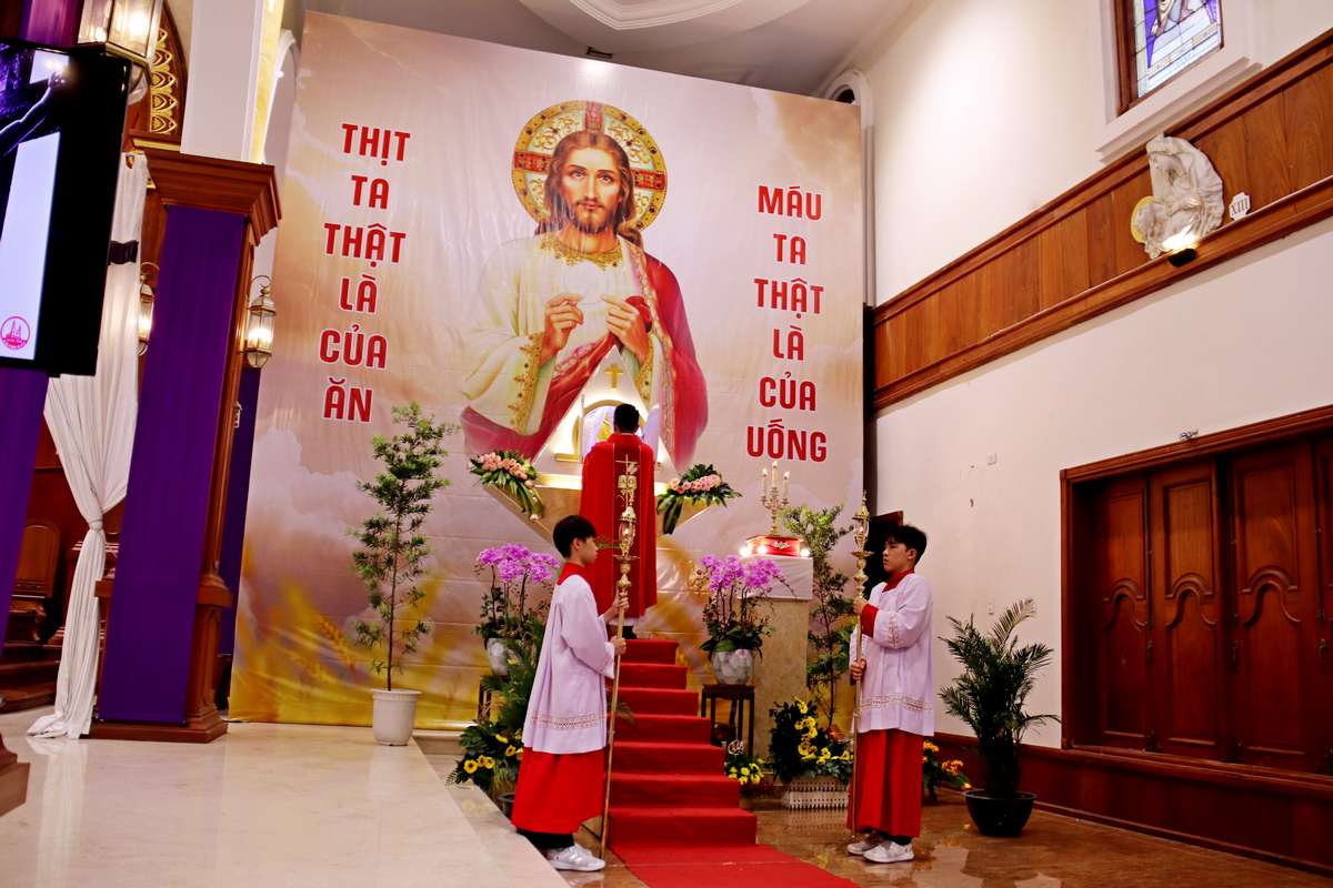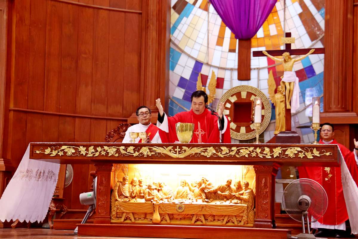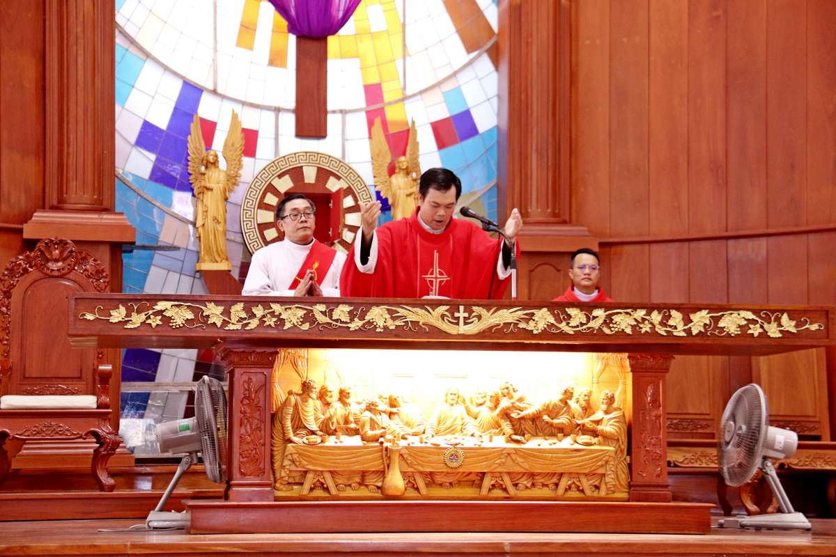 Đồng tế với ngài có Lm Gioan Kim Phạm Chiến (TGP Huế), cùng với thầy Phó tế Phêrô Lưu Đình Niệm phụ giúp bàn thờ.