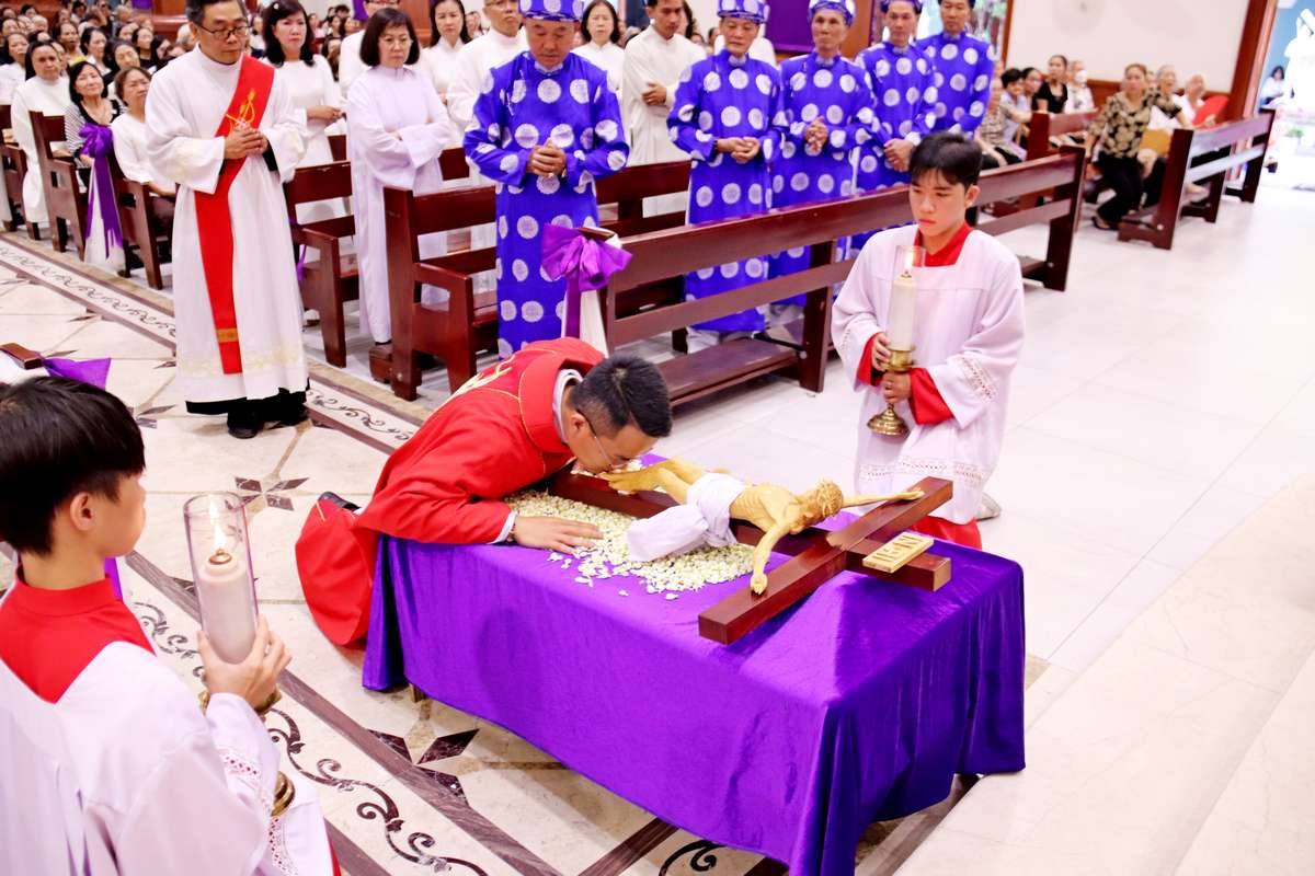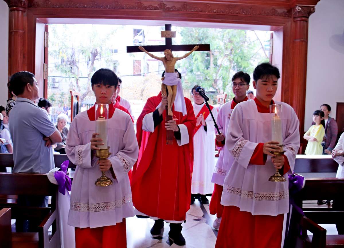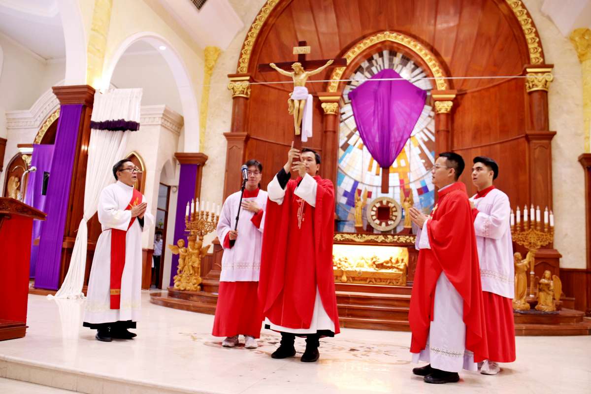 Đó là lời xướng cao trọng trong nghi thức Suy tôn Thánh Giá, tưởng niệm cuộc Thương Khó của Chúa Giêsu được cử hành vào lúc 16g00, ngày 03-4-2026, tại nhà thờ Bùi Phát, Giáo hạt Tân Định, do Linh mục (Lm) Giuse Nguyễn Trung Tín chủ tế.