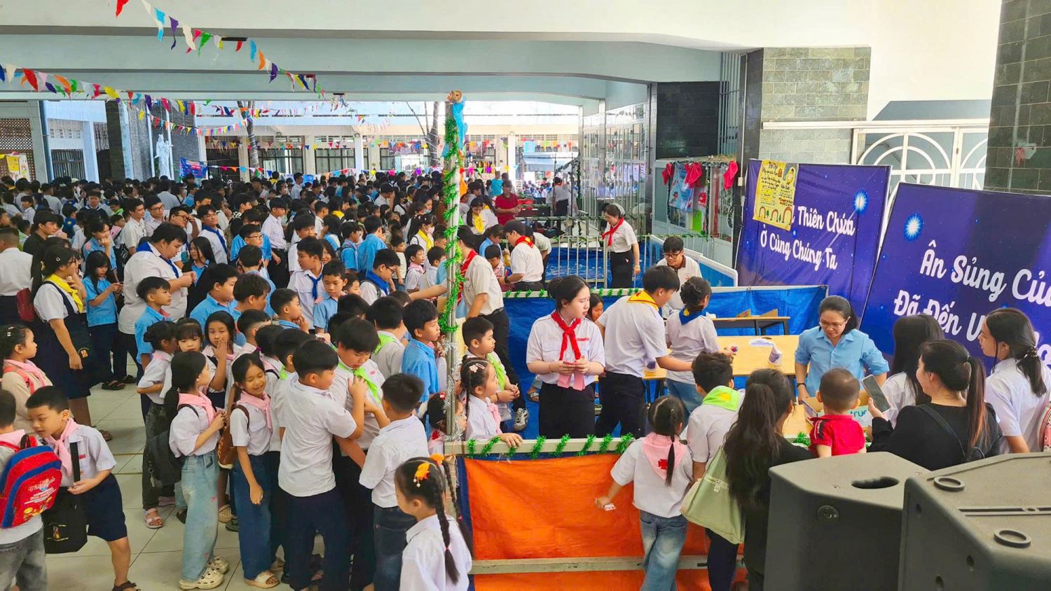 Ngay từ sáng sớm, bầu không khí tại khuôn viên giáo xứ đã trở nên nhộn nhịp. Sau Thánh lễ Hiển Linh trang nghiêm lúc 8g00, gần 1.700 em thiếu nhi và học sinh trường Phổ cập đã cùng nhau bước vào hành trình “Gieo hy vọng”.
