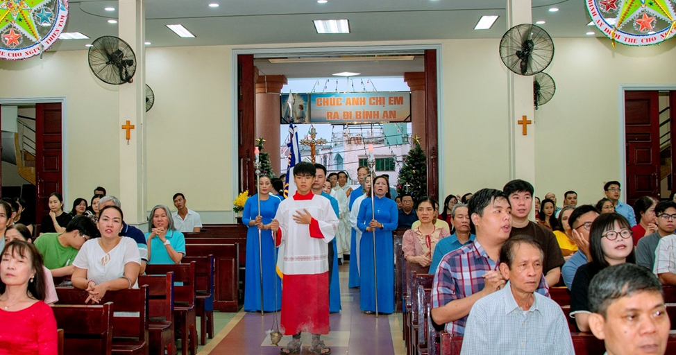 Thánh lễ khởi sự với đoàn rước từ cuối thánh đường tiến lên cung thánh.