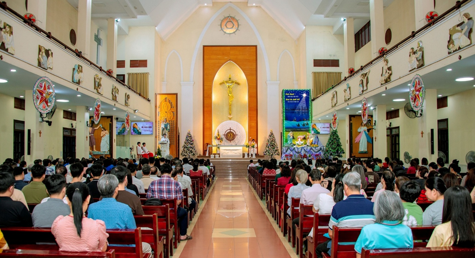 Thánh lễ do linh mục chánh xứ Giuse Hoàng Đình Hải chủ sự, với sự hiện diện của quý tu sĩ nam nữ, Hội đồng Mục vụ Giáo xứ, Hội Gia đình Thánh Mẫu và đông đảo các thành phần Dân Chúa trong giáo xứ.