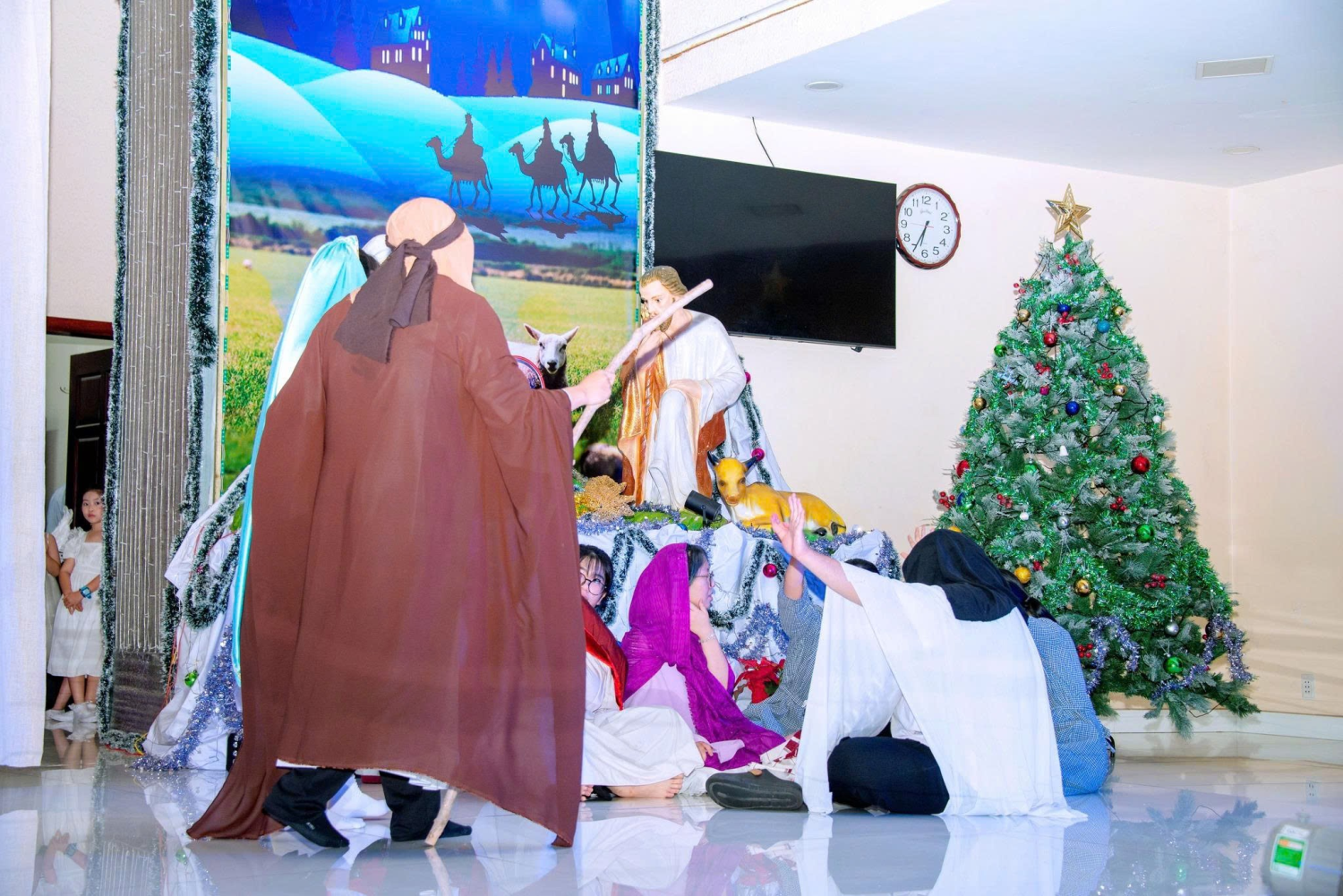 Hình ảnh các mục đồng, các thiên thần, Đức Maria, thánh Giuse và các đạo sĩ phương Đông lần lượt xuất hiện trong không gian thánh đường, không chỉ như một vở diễn, nhưng như lời chứng sống động cho mầu nhiệm Tình Yêu Thiên Chúa dành cho con người. Tiếp nối là cảnh bạo quyền truy bắt và sát hại các trẻ sơ sinh, làm nổi bật sự đối nghịch giữa quyền lực trần gian và kế hoạch cứu độ của Thiên Chúa. Hoạt cảnh khép lại bằng hình ảnh Đức Maria và thánh Giuse đưa Hài Nhi trốn sang Ai Cập, trong khi các thiên thần cất cao lời ca ngợi khen Đấng Cứu Thế đã đến trần gian.