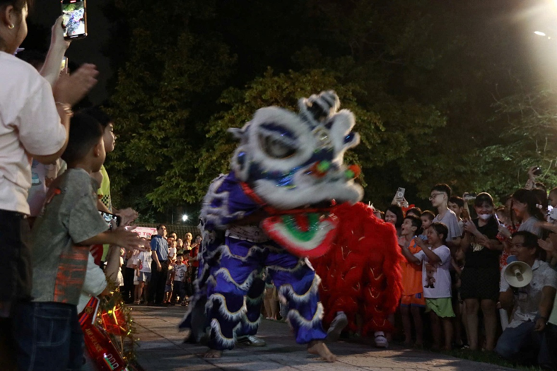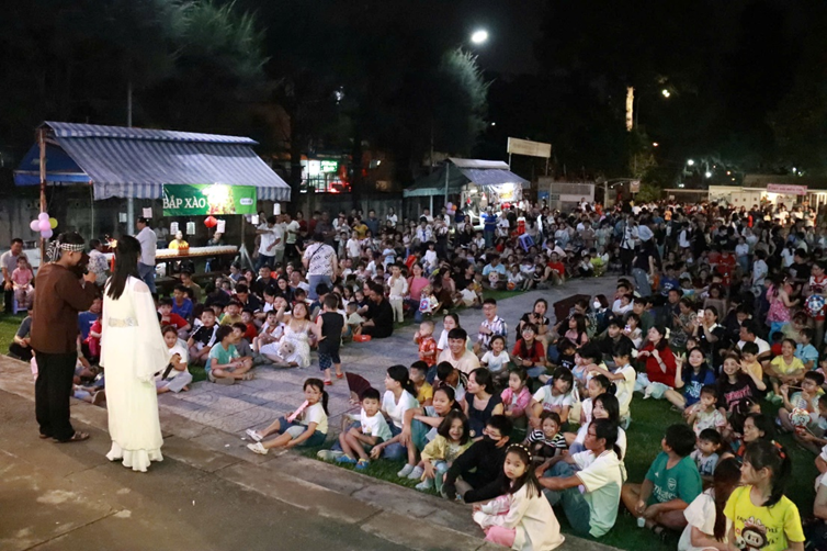 Chương trình diễn ra từ 19g00 đến 21g00. Mở đầu lúc 19g15 là phần văn nghệ Trung Thu với các tiết mục múa hát vui tươi do chính các em thiếu nhi biểu diễn. Màn múa lân sôi động cùng ánh đèn lung linh đã làm bừng sáng bầu khí đêm trăng rằm.