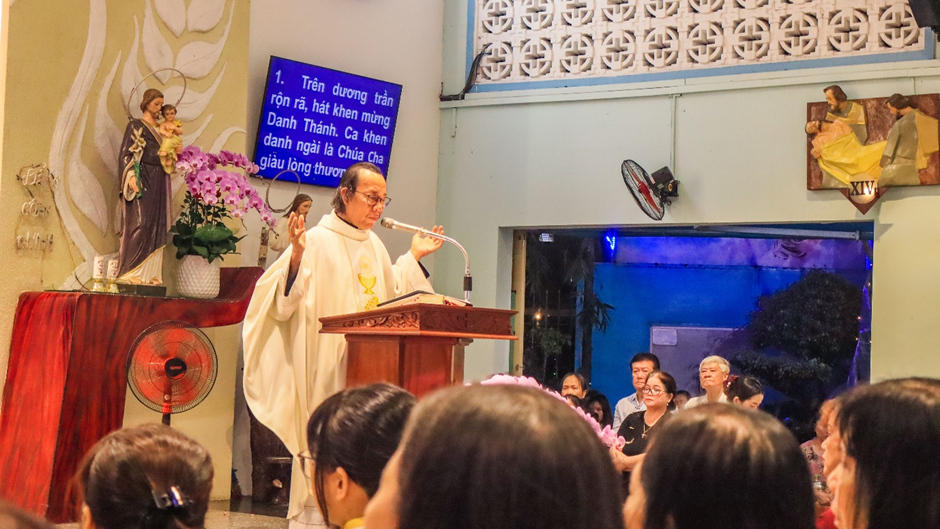 Trong bài giảng lễ, linh mục Vinh Sơn chia sẻ.