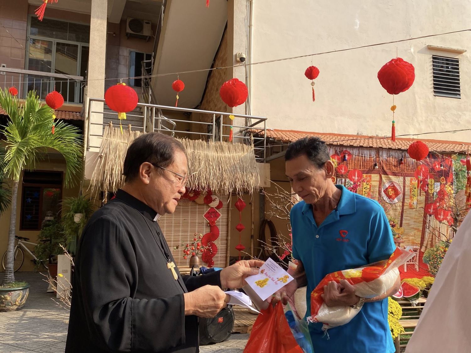 Những cụ già đội chiếc nón lá, bước đi khó khan với những chiếc áo đã sờn bạc màu theo thời gian vì tần tảo, được quý chức dìu vào khu vực nhận quà. Món quà hôm nay không chỉ là gạo, nhu yếu phẩm hay một khoản tiền, nhưng còn là tấm lòng của giáo xứ Hòa Hưng dành tặng - món quà mùa xuân với lời chúc mọi nhà, mọi người được sum vầy, hạnh phúc, được yêu thương và tôn trọng.
