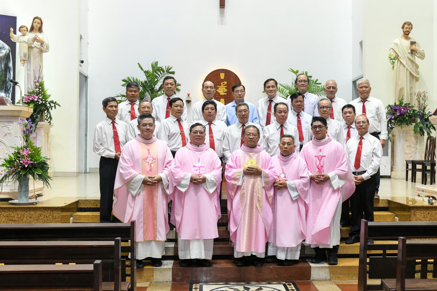 Đáp lời, Lm chánh xứ một lần nữa cảm ơn mọi thành phần dân Chúa, đồng thời xin cộng đoàn tiếp tục cầu nguyện cho ngài trong chặng đường sắp tới. Thánh lễ kết thúc lúc 6g00 cùng ngày với phép lành trọng thể và trong niềm vui lan tỏa qua những tấm hình kỷ niệm được chụp chung với quý cha đồng tế trước cung thánh.
