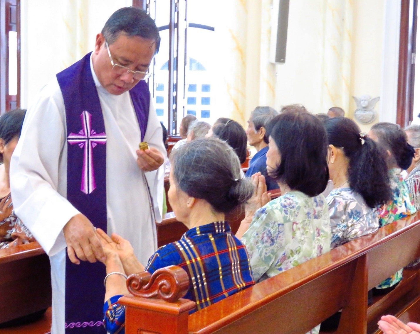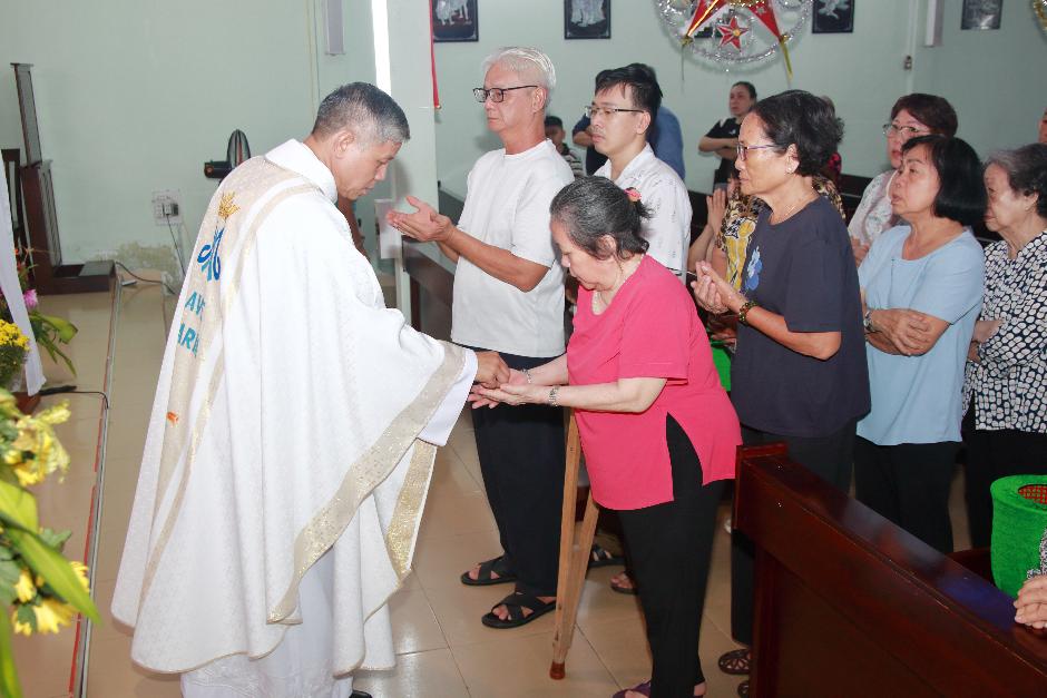Sau đó, cha sở cử hành Bí tích Xức Dầu Bệnh Nhân, toàn thể cộng đoàn đều tiến lên lãnh nhận trong niềm xác tín vào ơn Chúa ban thông qua các Bí tích.