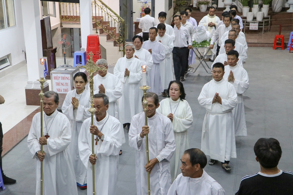 Thánh lễ khởi sự với đoàn rước từ cuối nhà thờ tiến lên cung thánh.
