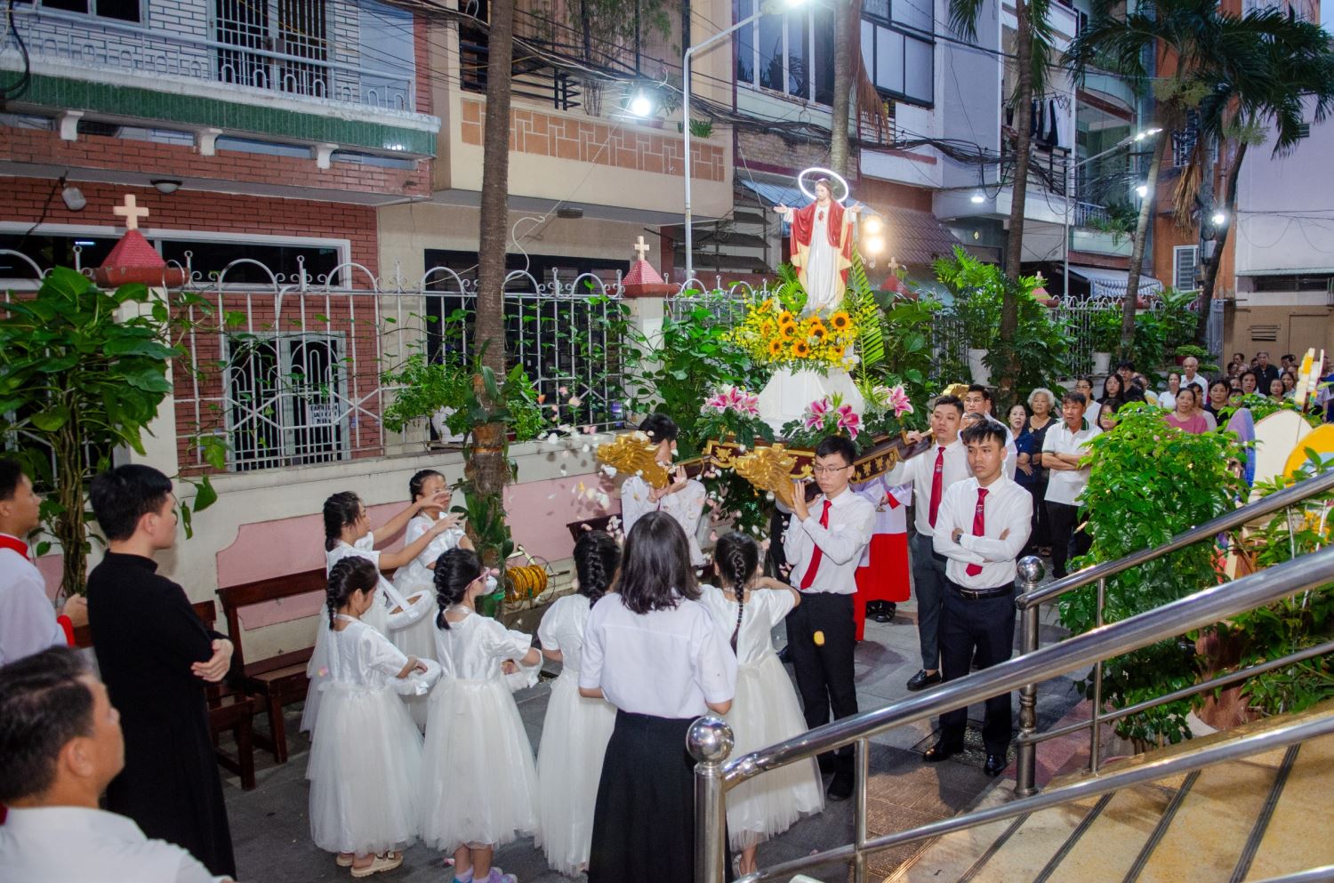 Thánh lễ khởi sự với đoàn rước kiệu Chúa Kitô Vua xung quanh nhà thờ tiến vào cung thánh.
