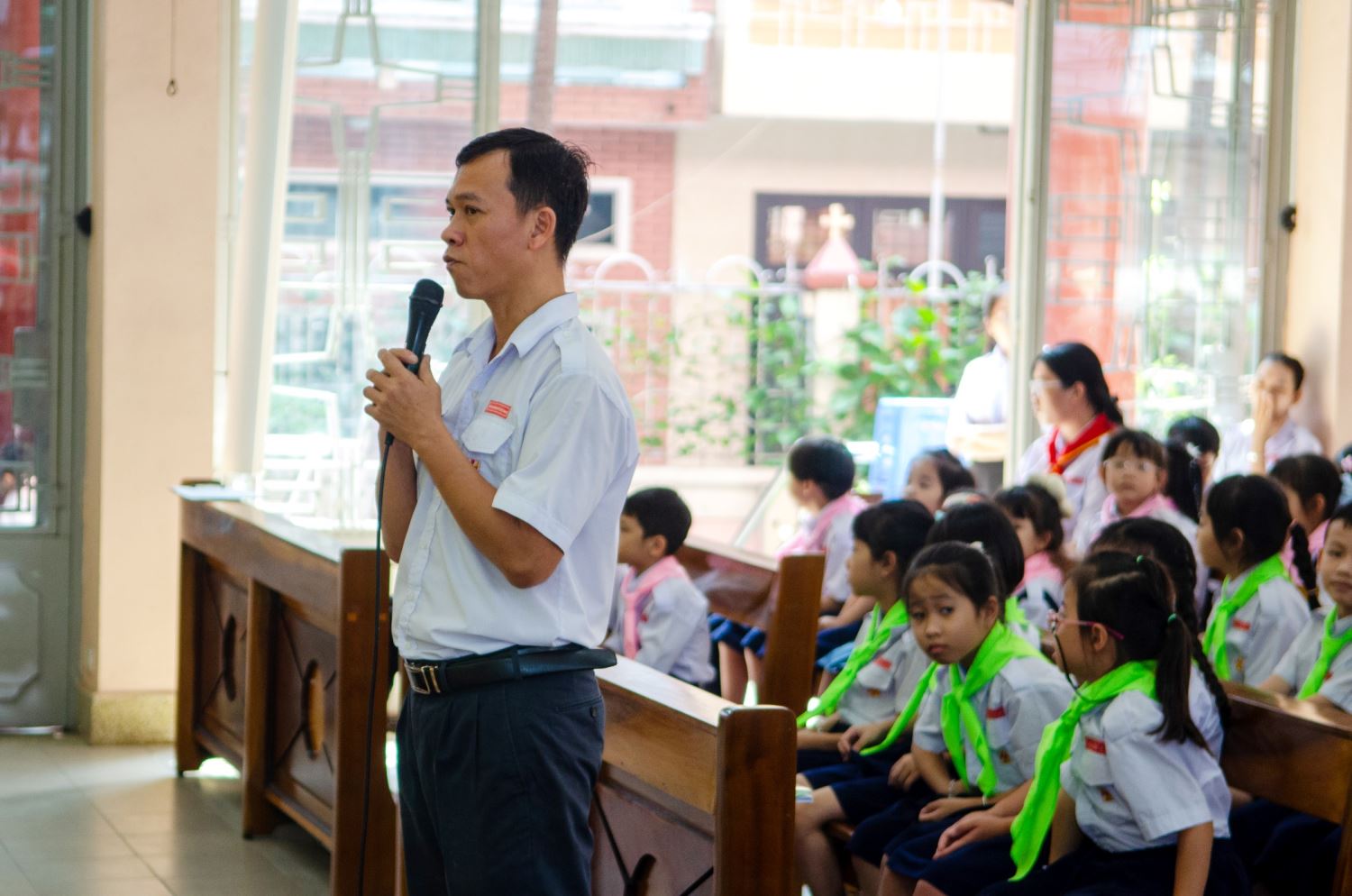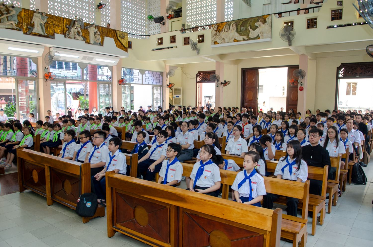 Tham dự Thánh lễ, ngoài các tu sĩ nam nữ, các anh chị giáo lý viên, còn có đông đảo các em thiếu nhi trong giáo xứ.