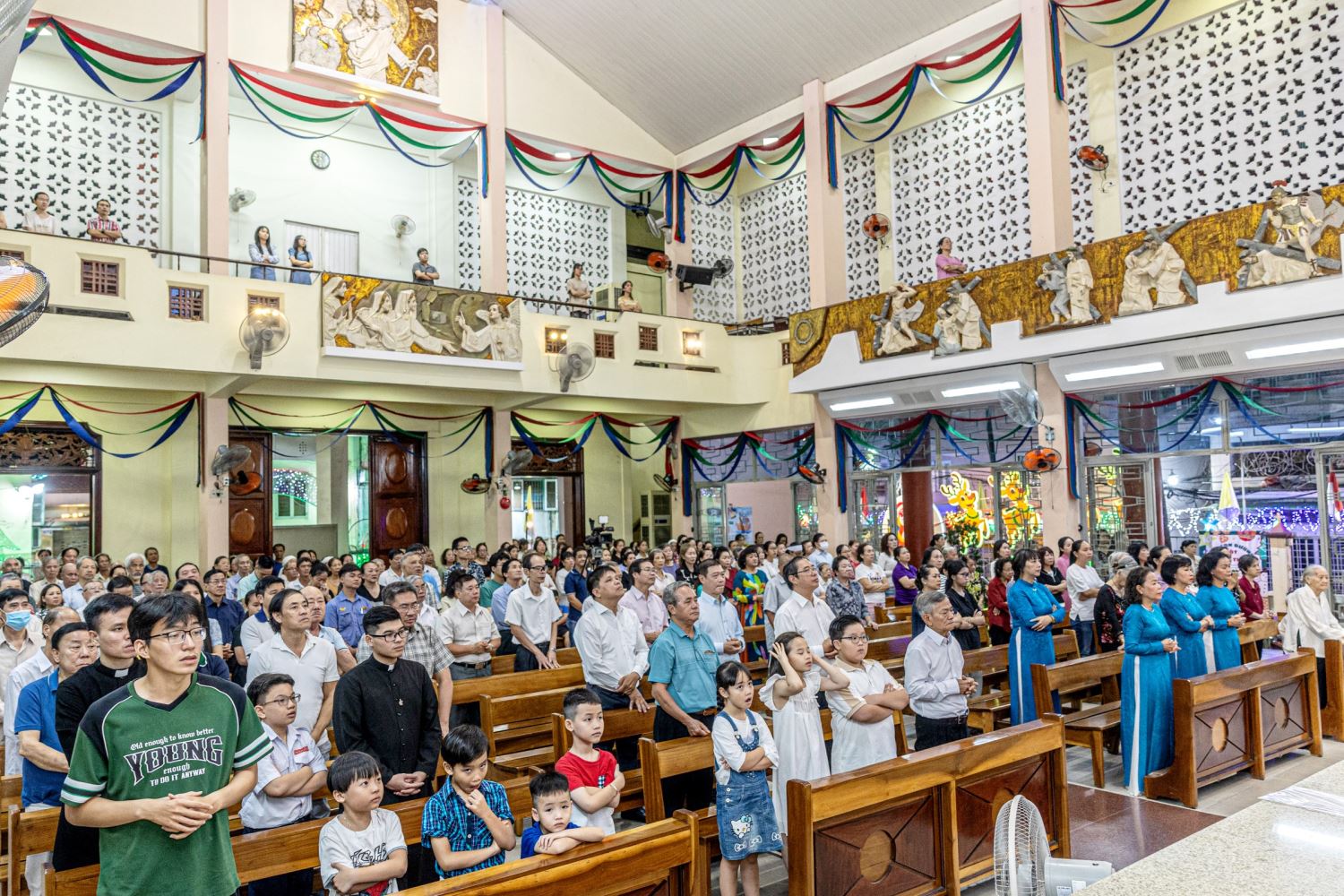 Đồng tế với ngài có linh mục phó xứ Vinh Sơn Nguyễn Vũ Hiệp Hoàng, cùng sự tham dự đông đảo của cộng đoàn giáo dân giáo xứ Nam Thái ngồi chật kín khuôn viên nhà thờ.