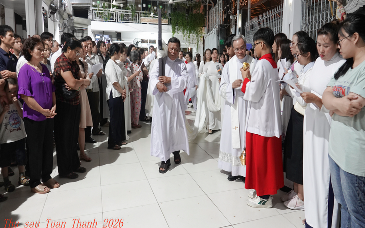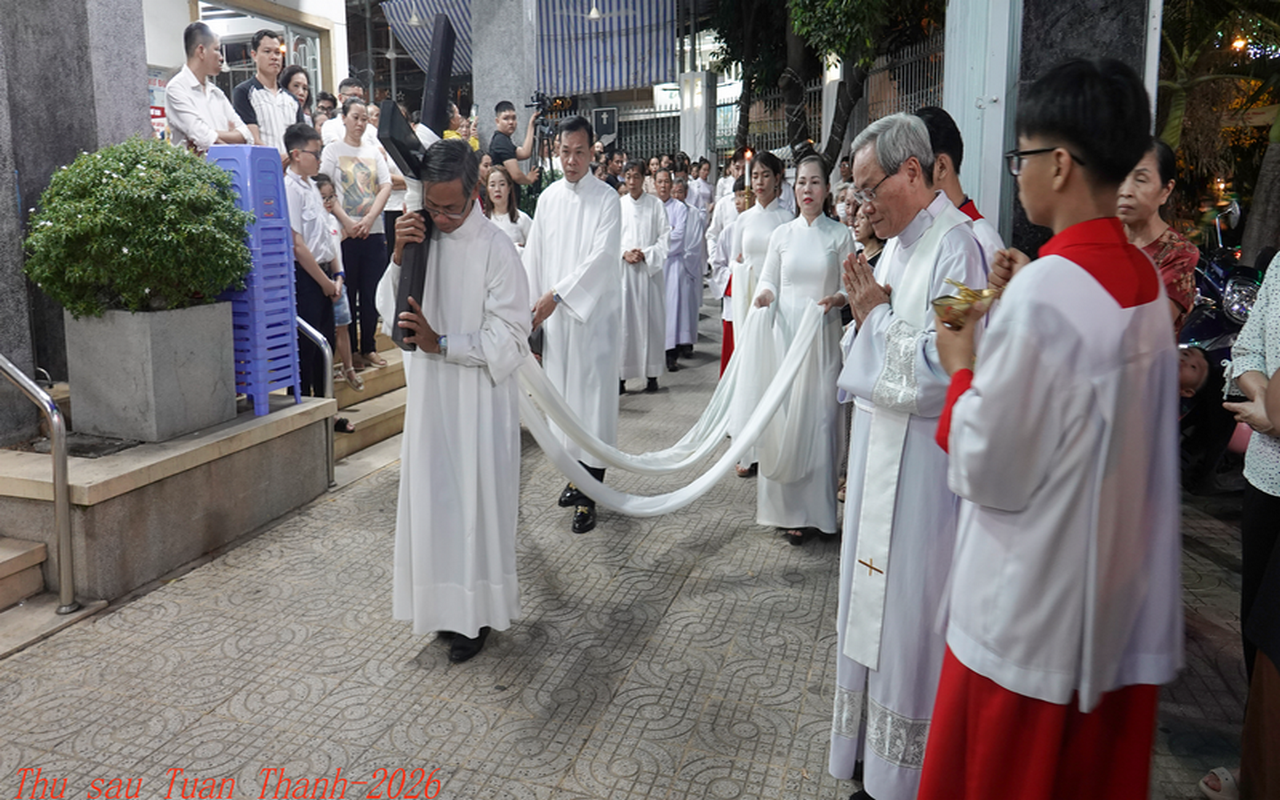 Sự hiện diện đông đảo của cộng đoàn dân Chúa, từ những cụ già chống gậy đến các em thiếu nhi, đã dệt nên một bức tranh sống động về đức tin. Mọi ồn ào của phố thị dường như lắng lại, nhường chỗ cho sự thinh lặng nội tâm và những giọt nước mắt âm thầm rơi khi suy niệm về tình yêu cứu độ.
