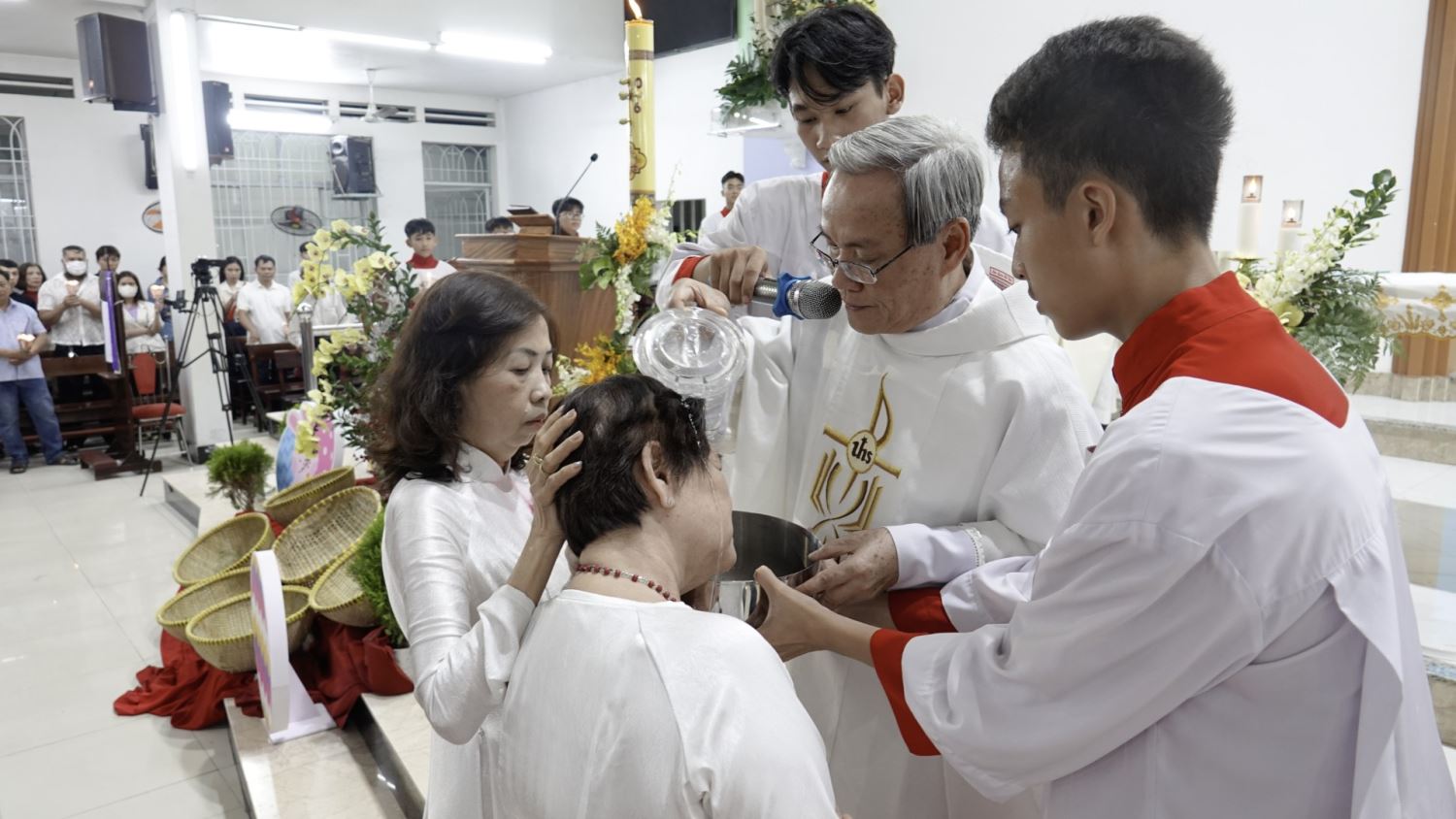 - Lãnh nhận các Bí tích: Qua nước và dầu thánh, hai tân tòng được gia nhập Hội Thánh. Cộng đoàn cùng cầm nến sáng, lặp lại lời hứa khi chịu phép Rửa, quyết tâm sống đời sống mới trong ánh sáng Phục Sinh.