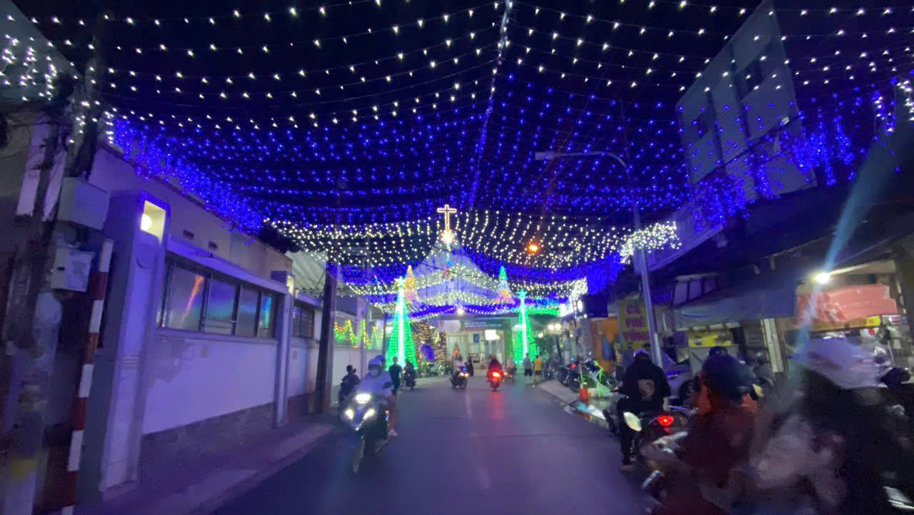 Từ ngã ba Trường Chinh rẽ vào Hồ Đắc Di, con đường rực rỡ ánh sáng dẫn bước đoàn con về Nhà Chúa. Ánh sáng không chỉ chiếu rọi con đường mà còn tượng trưng cho ánh sáng Kitô, xua tan bóng tối và hướng từng tâm hồn về Thánh đường linh thiêng.