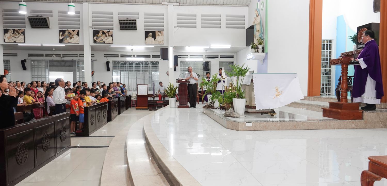 Trước khi Thánh lễ bắt đầu, linh mục Chánh xứ Giuse hân hoan chào đón và giới thiệu cha Carôlô Vũ Anh Quốc, O.P - vị giảng phòng của kỳ tĩnh tâm, đến với cộng đoàn. Sau phần giới thiệu, cha Carôlô bắt đầu chia sẻ đề tài của ngày tĩnh tâm thứ nhất.