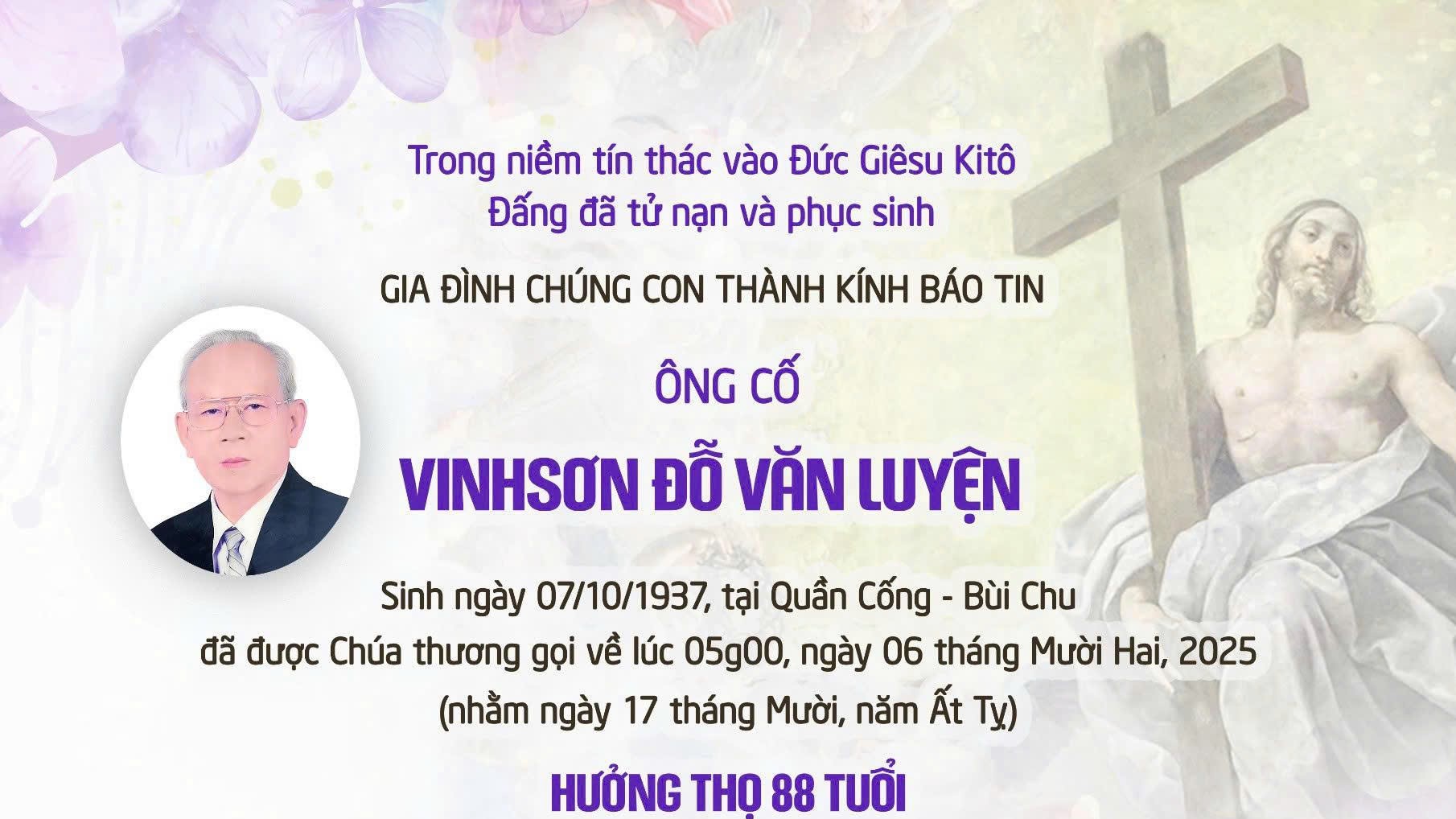 - Cáo phó: Thân phụ Lm. Giuse Đỗ Xuân Vinh qua đời