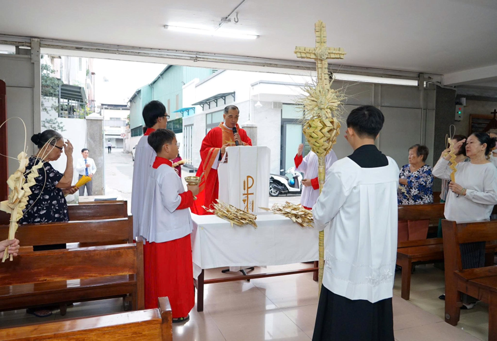Bước vào Chúa nhật Lễ Lá, khai mạc Tuần Thánh, cộng đoàn giáo xứ tham dự phụng vụ trong bầu khí trang nghiêm và sốt sắng, mở đầu cho tuần lễ quan trọng nhất trong năm phụng vụ, tuần tưởng niệm cuộc Thương Khó, Tử Nạn và Phục Sinh của Chúa Giêsu.