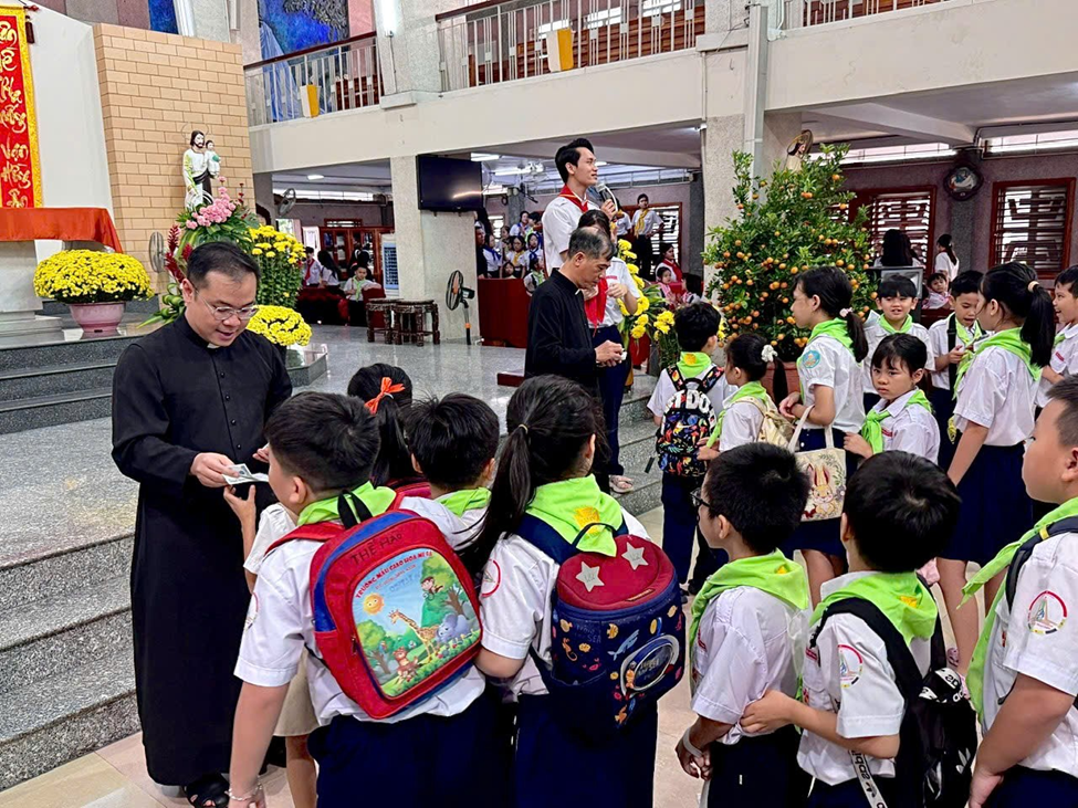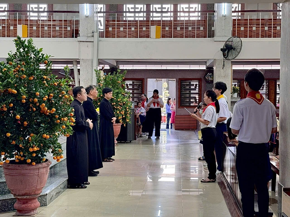 Buổi chúc Tết khép lại trong bầu khí ấm áp và chan hòa tình gia đình. Những lời chúc đầu xuân không chỉ là nghi thức truyền thống, nhưng còn là nhịp cầu nối kết yêu thương giữa mục tử và đoàn chiên nhỏ, giữa người cha thiêng liêng và các thiếu nhi trong đại gia đình Giáo xứ.