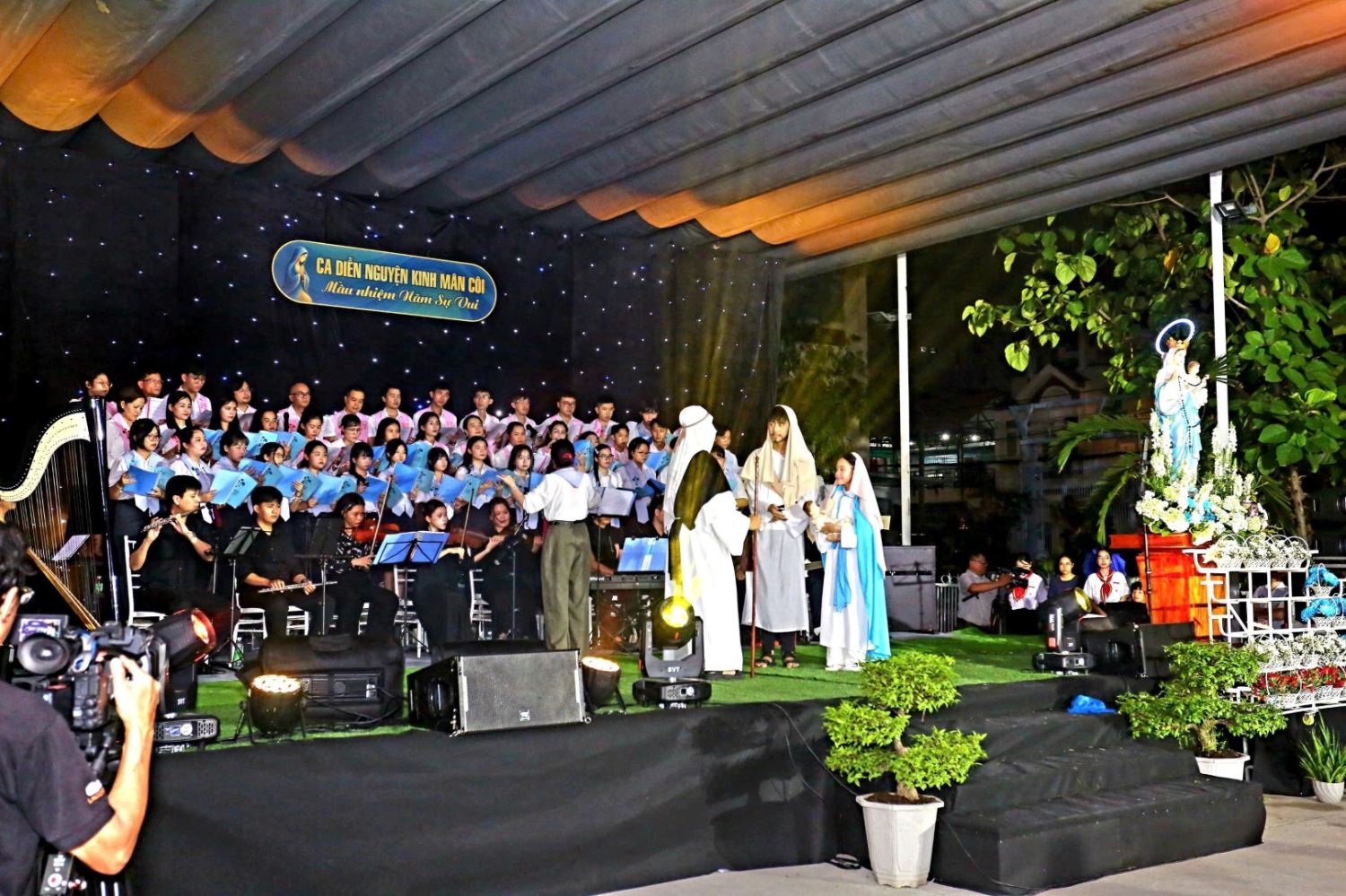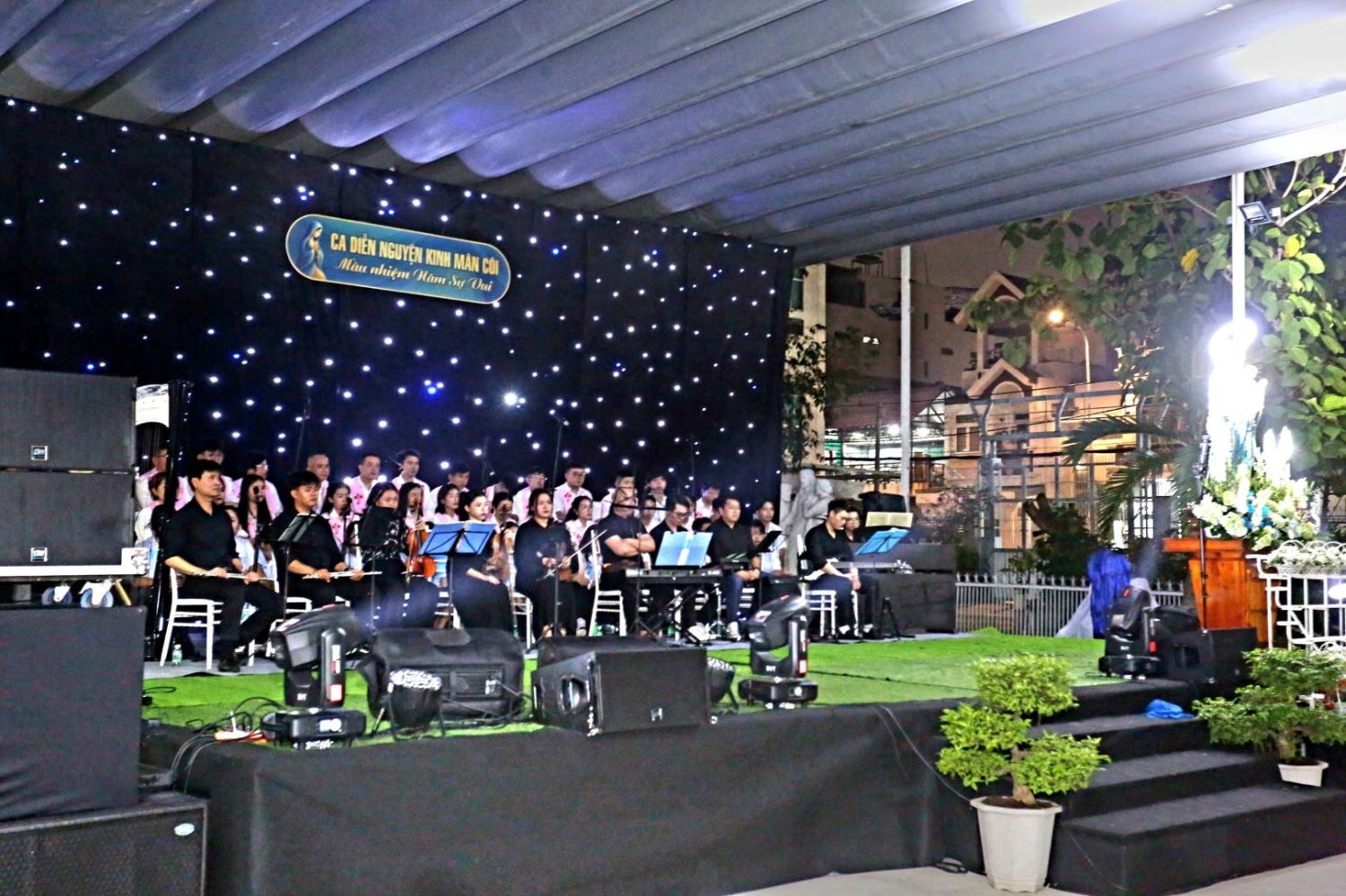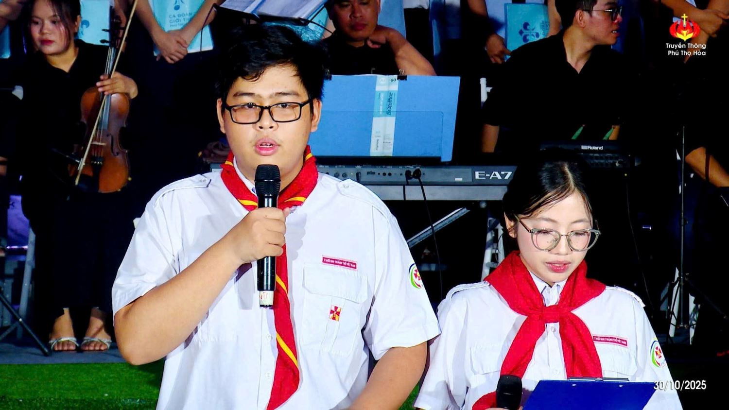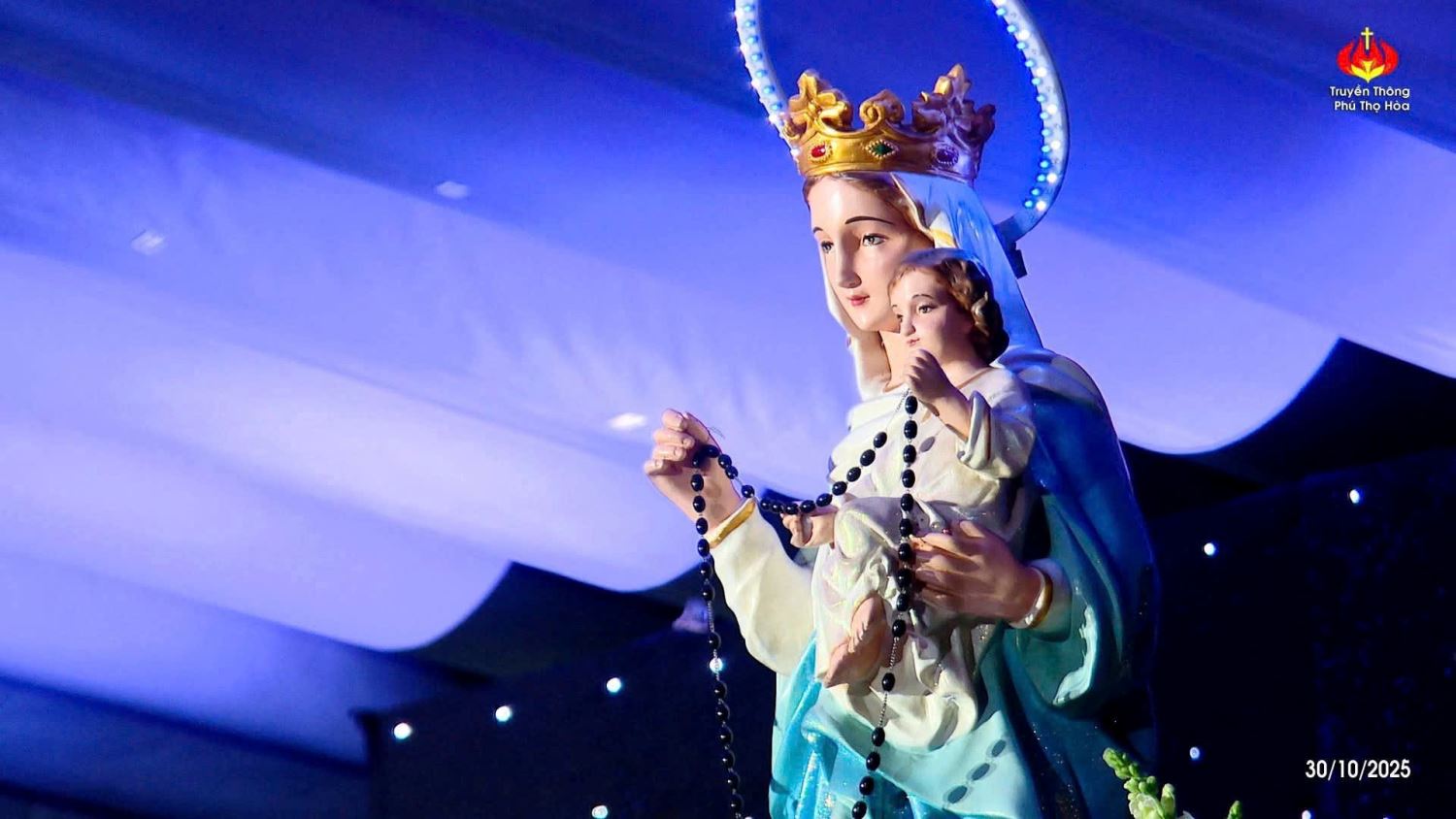 TGPSG -- Sau 4 tuần thực hiện đọc kinh Mân Côi kính Đức Mẹ vào thứ Bảy hàng tuần tại đài Đức Mẹ, lúc 19g đến 20g30 thứ Năm ngày 30-10-2025, kết thúc tháng Mân côi, Ban điều hành Giới trẻ và đoàn Thiếu nhi Thánh Thể của giáo xứ Phú Thọ Hòa đã kết hợp để tổ chức một buổi Diễn nguyện Thánh ca.
