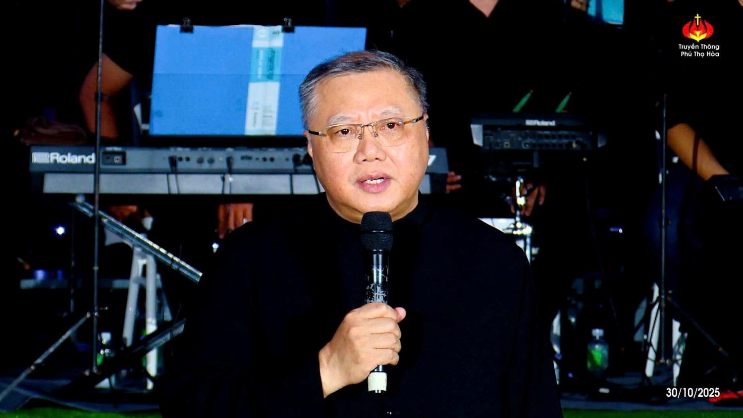 Lm Chánh xứ tuyên bố khai mạc chương trình: Đây là một hoạt động rất tốt đẹp, chúng ta đã thực hiện đọc kinh Mân Côi trong suốt tháng 10-2025. Hôm nay như là một lời kết, với mục đích tôn vinh Thiên Chúa, Đức Maria, Thánh Giuse và các Thánh.
