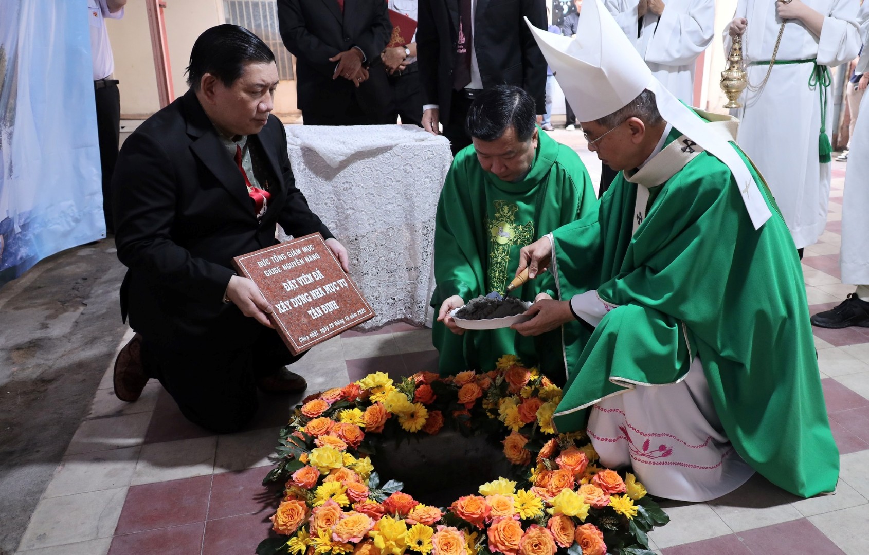 Trước Thánh lễ, ông Chủ tịch HĐMV đọc lời dẫn lễ và nói lên lòng biết ơn kính nhớ đến cha cố Phaolô Lê Nguyên Kỷ, đã nhận Đức Maria Hồn Xác Lên Trời làm bổn mạng giáo xứ. Trong tâm tình hiệp dâng, cộng đoàn hướng về đoàn đồng tế đang dần tiến lên cung thánh, cha Đa Minh thắp hương trước tượng Đức Mẹ.
