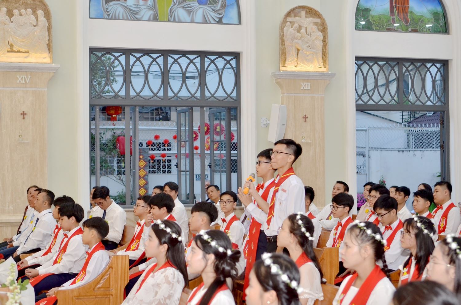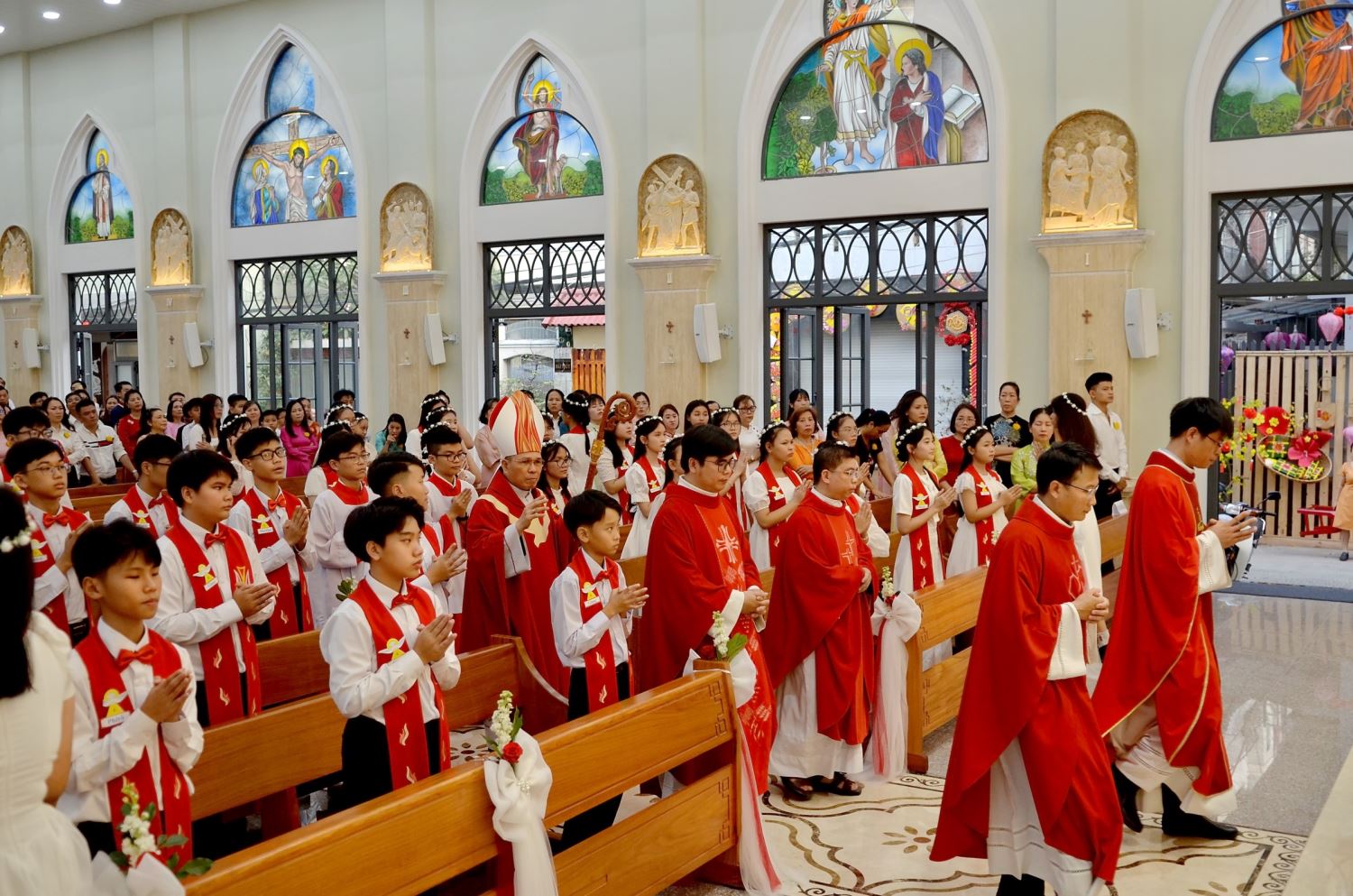 Tham dự Thánh lễ có các em thiếu nhi, phụ huynh, cha mẹ đỡ đầu và cộng đoàn giáo dân trong giáo xứ.