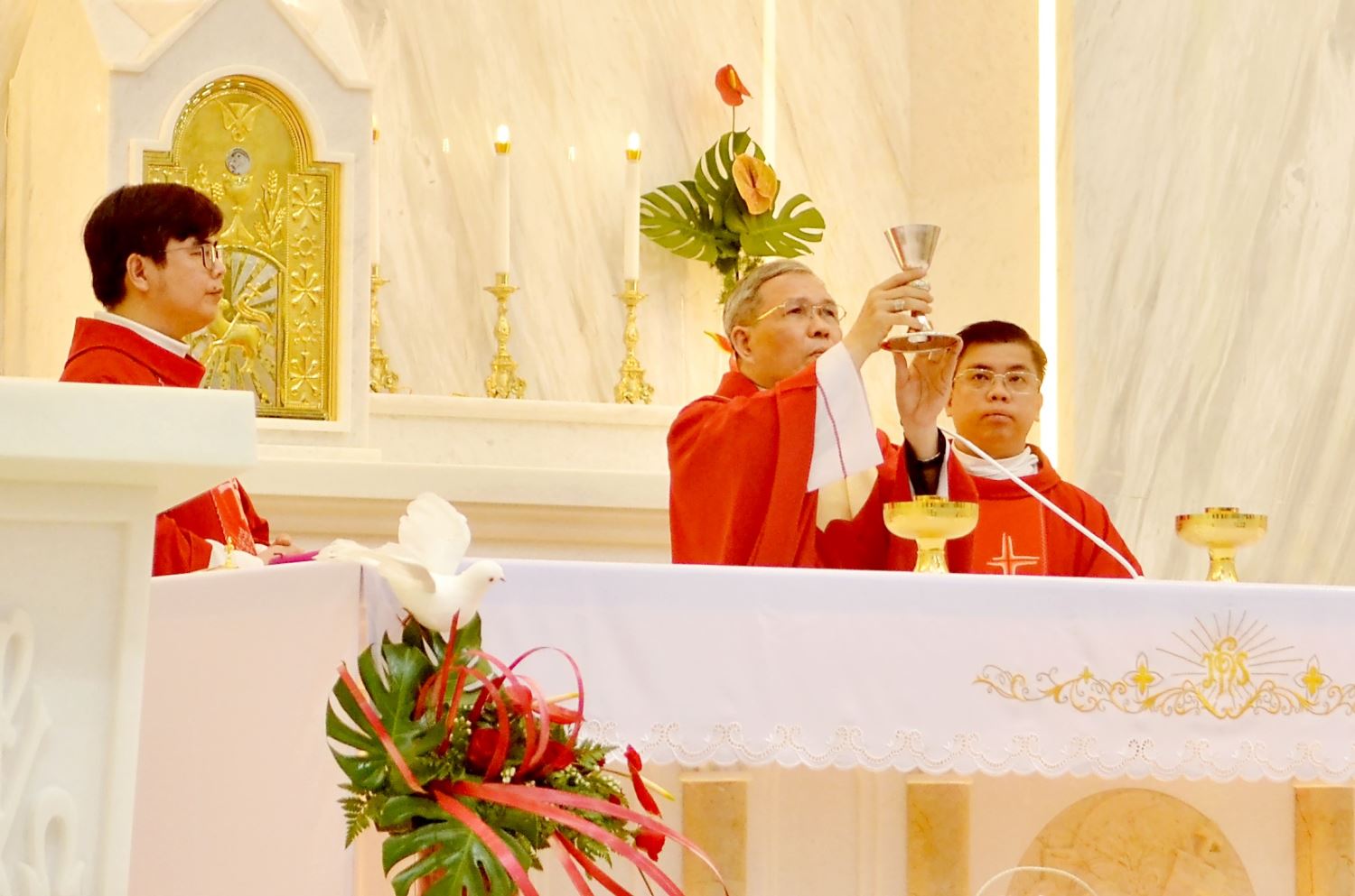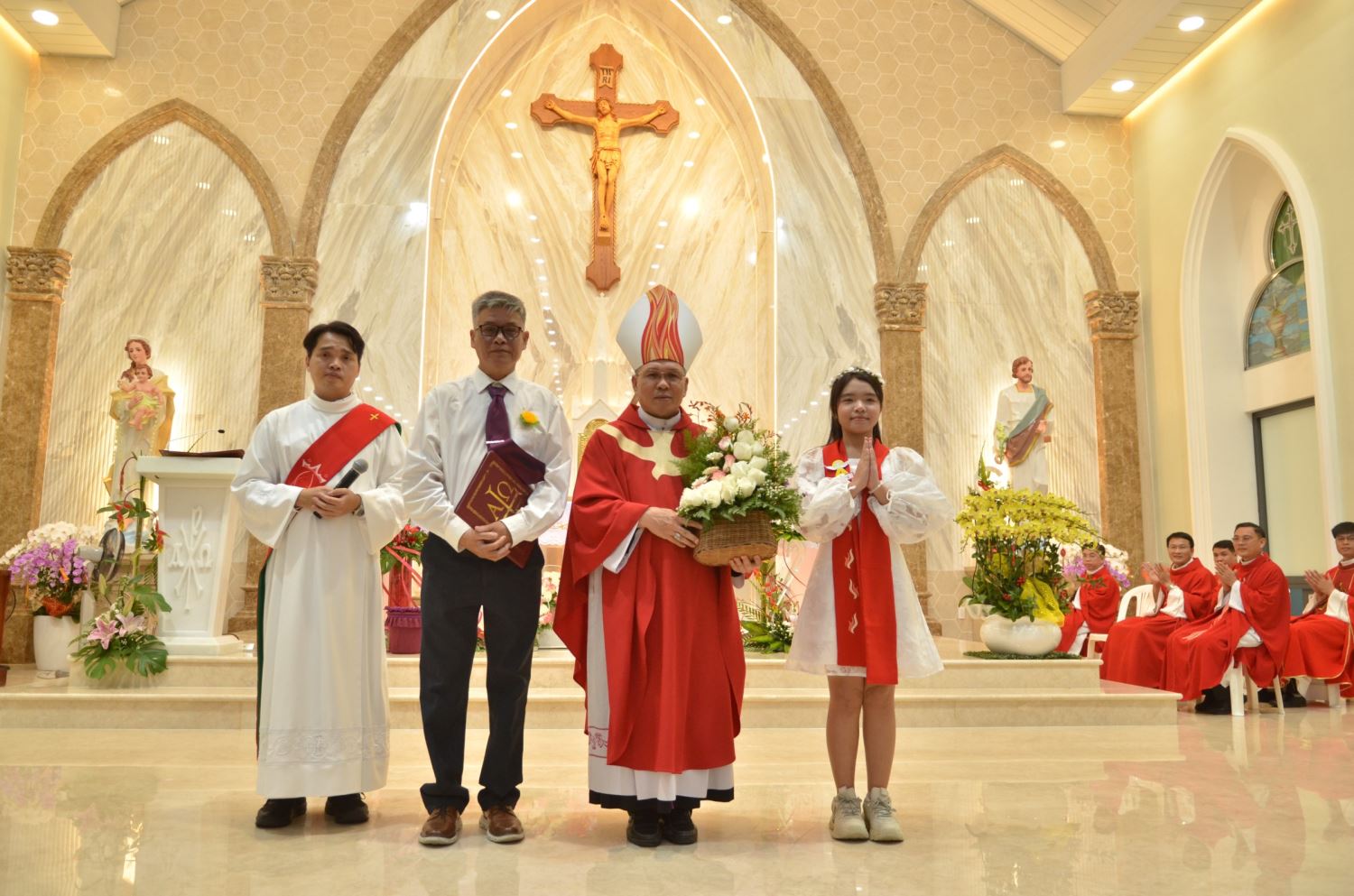 Đồng tế với ngài có linh mục Giuse Nguyễn Trọng Hiếu, linh mục Giuse Nguyễn Đức Thịnh cùng bốn linh mục khác. Phục vụ bàn thờ có thầy phó tế.