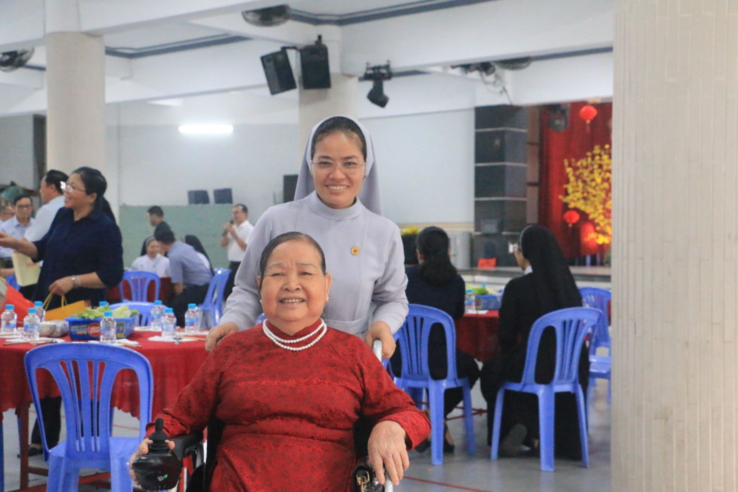 Giữa bầu khí ấy, hình ảnh một bà cố ngồi xe lăn, được người con nữ tu ân cần đẩy đi lễ rồi cùng dự tiệc sáng, khiến nhiều người lặng đi vì xúc động. Một đời hy sinh âm thầm. Có lẽ chỉ những ngày Tết sum họp như thế này, các ông bà cố mới được hưởng trọn niềm vui đoàn viên và niềm tự hào về ơn gọi của con mình.
