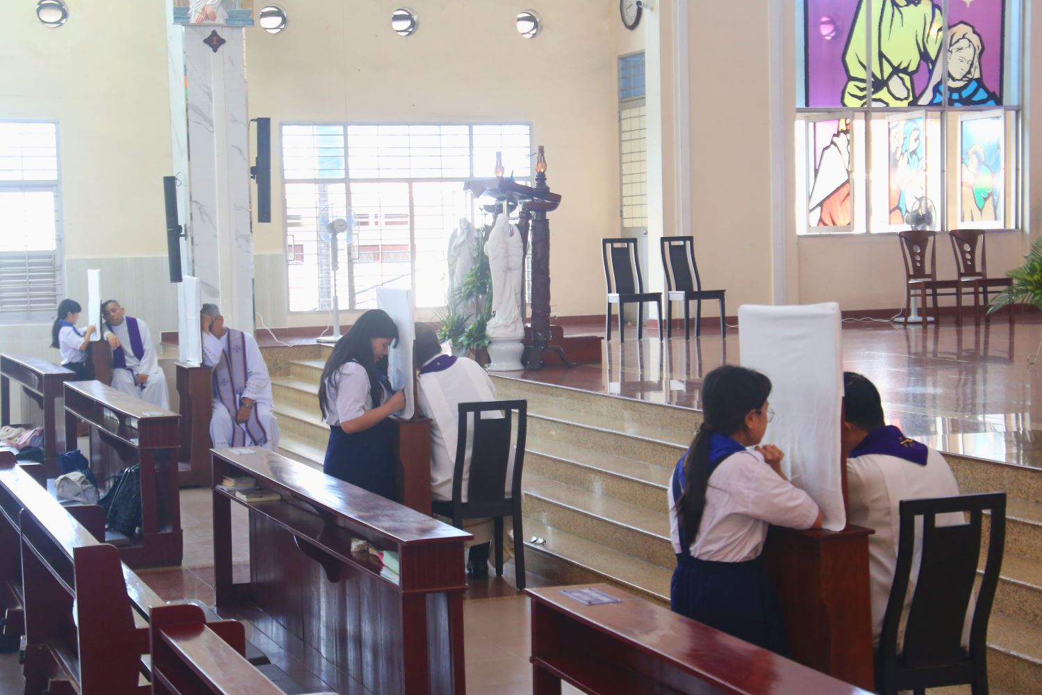 Sau Thánh lễ, các tòa giải tội được sắp xếp trong nhà thờ, với các linh mục Dòng Mẹ Chúa Cứu Chuộc ngồi tòa, đón nhận các em xưng tội để đón nhận ơn giao hòa với Chúa.