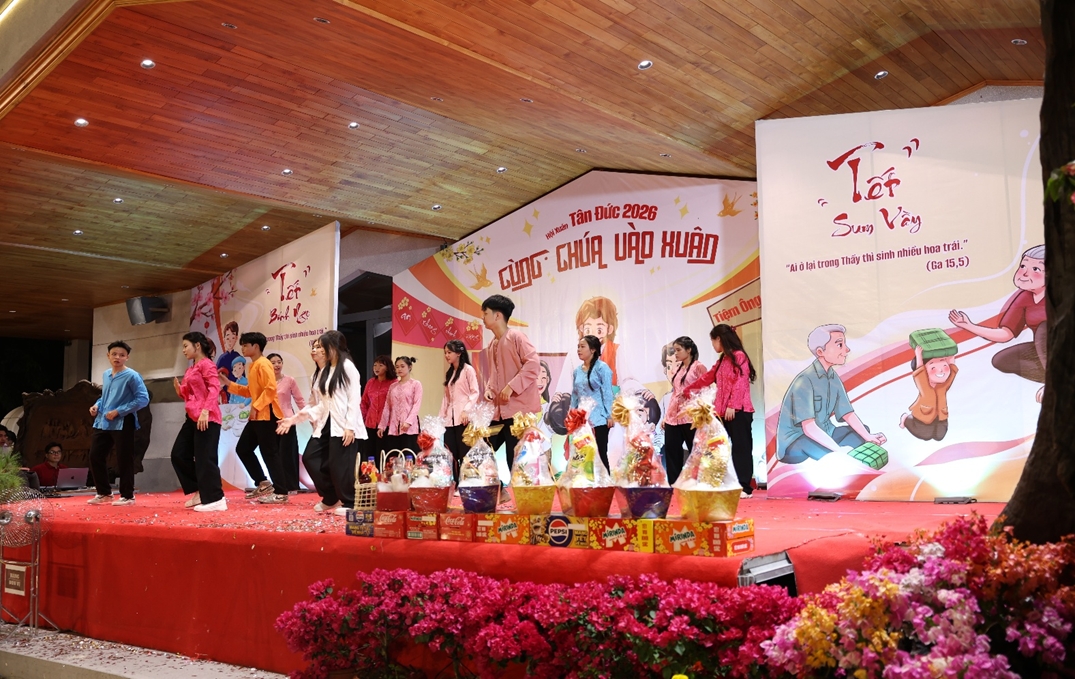 Sau giây phút thánh hóa, linh mục chánh xứ Phanxicô long trọng tuyên bố khai mạc Hội Xuân 2026 với chủ đề: “Cùng Chúa Vào Xuân.” Ngay sau đó, các gian hàng trò chơi, ẩm thực và văn nghệ chính thức hoạt động, phục vụ thiếu nhi và cộng đoàn.