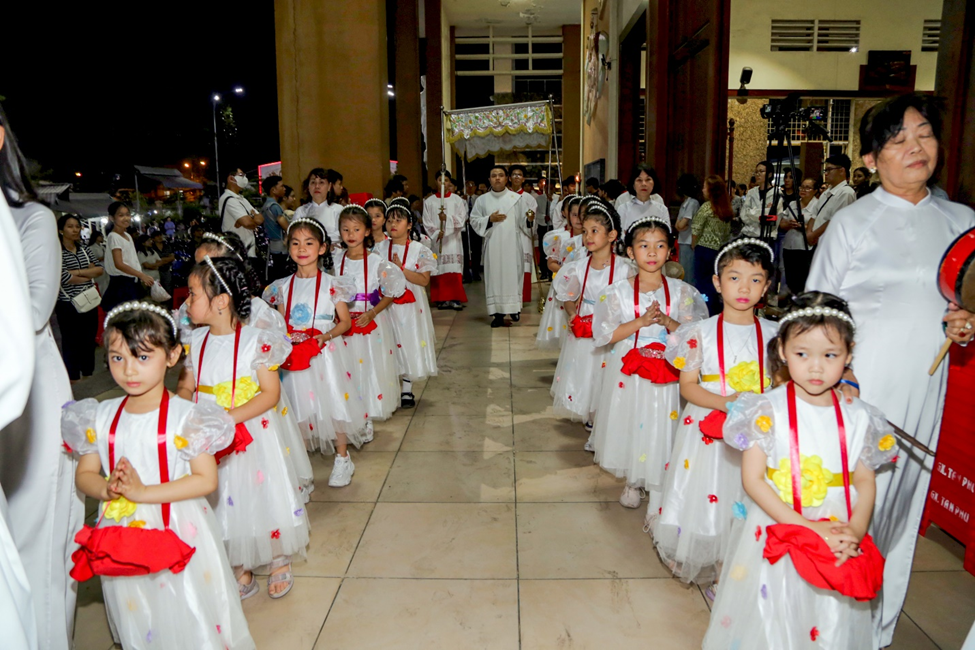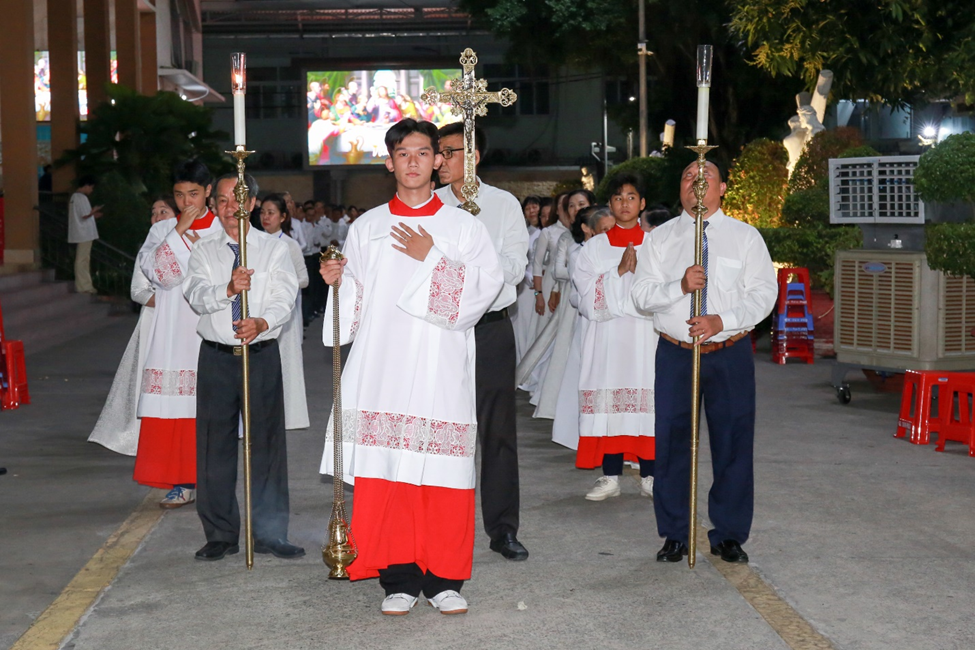 Thánh lễ khởi sự với đoàn rước từ Nhà Mục vụ giáo xứ tiến vào cung thánh.