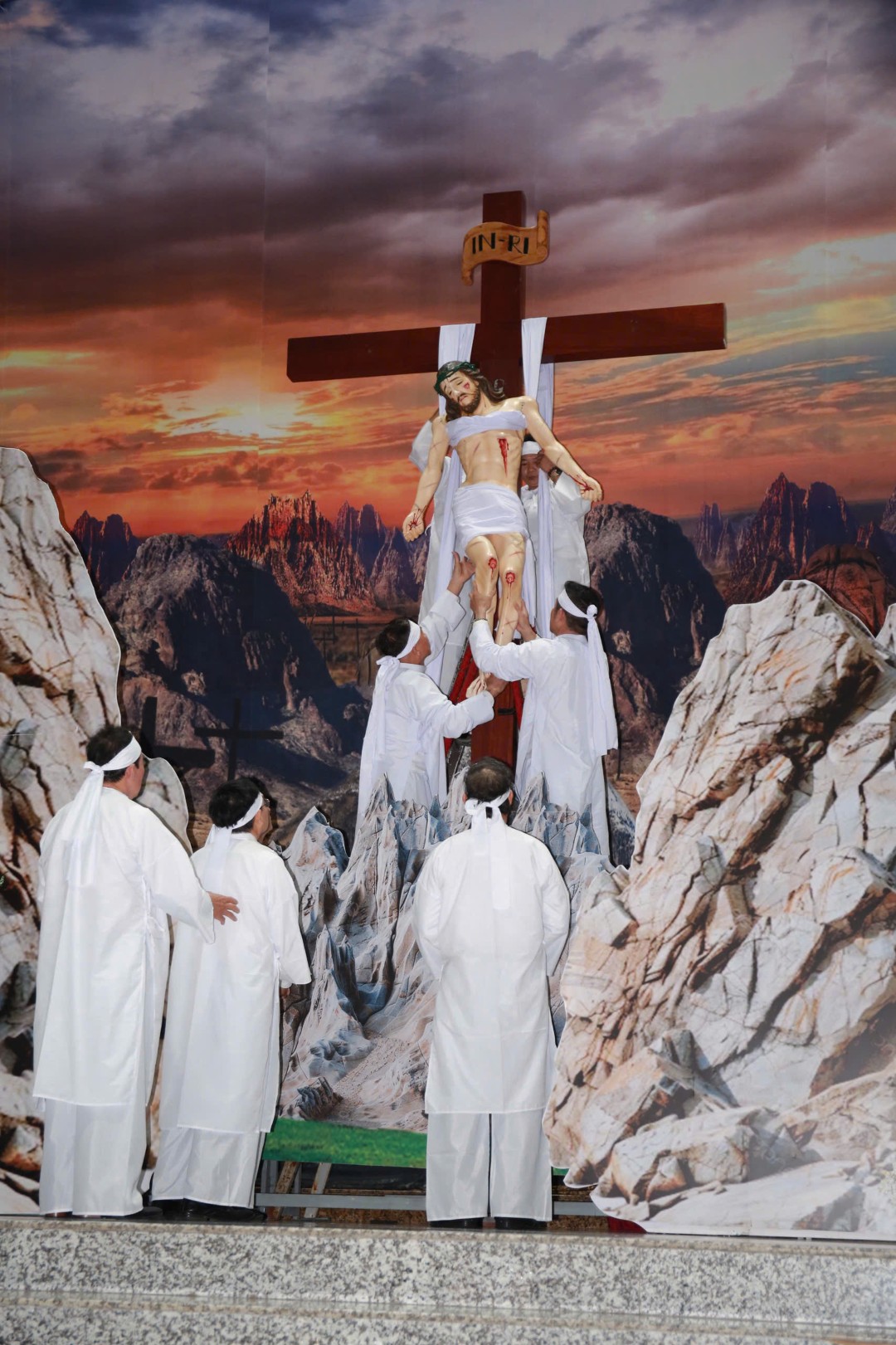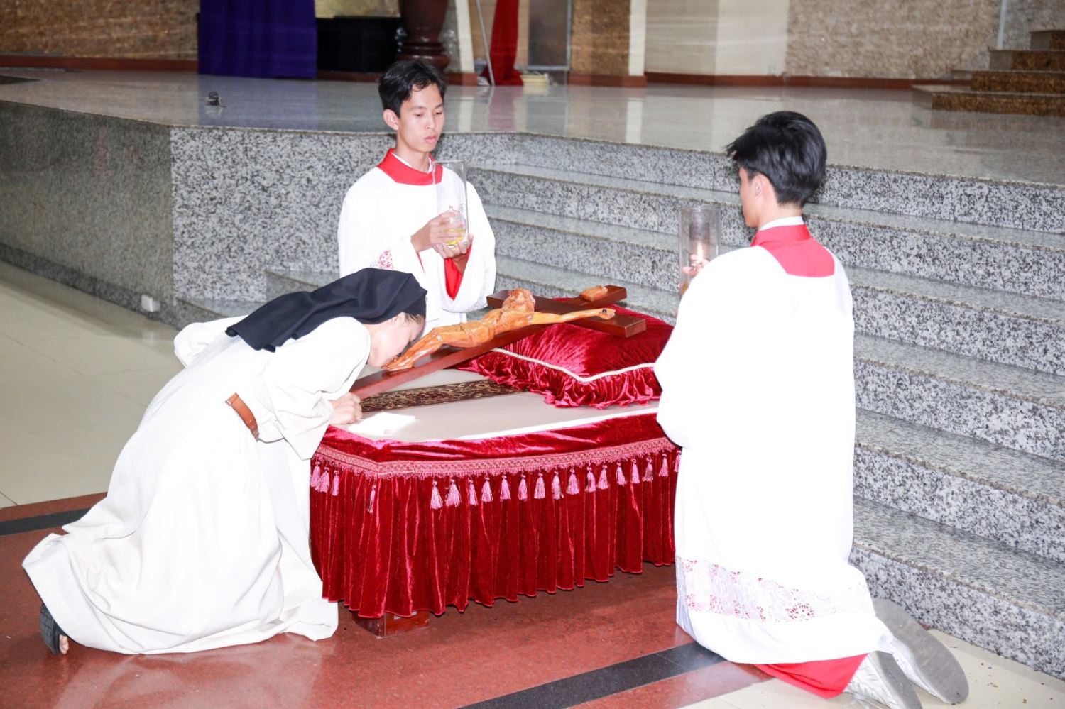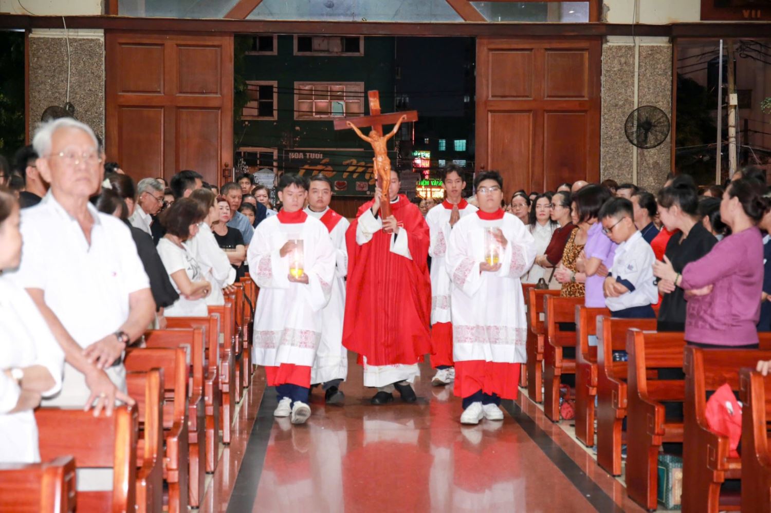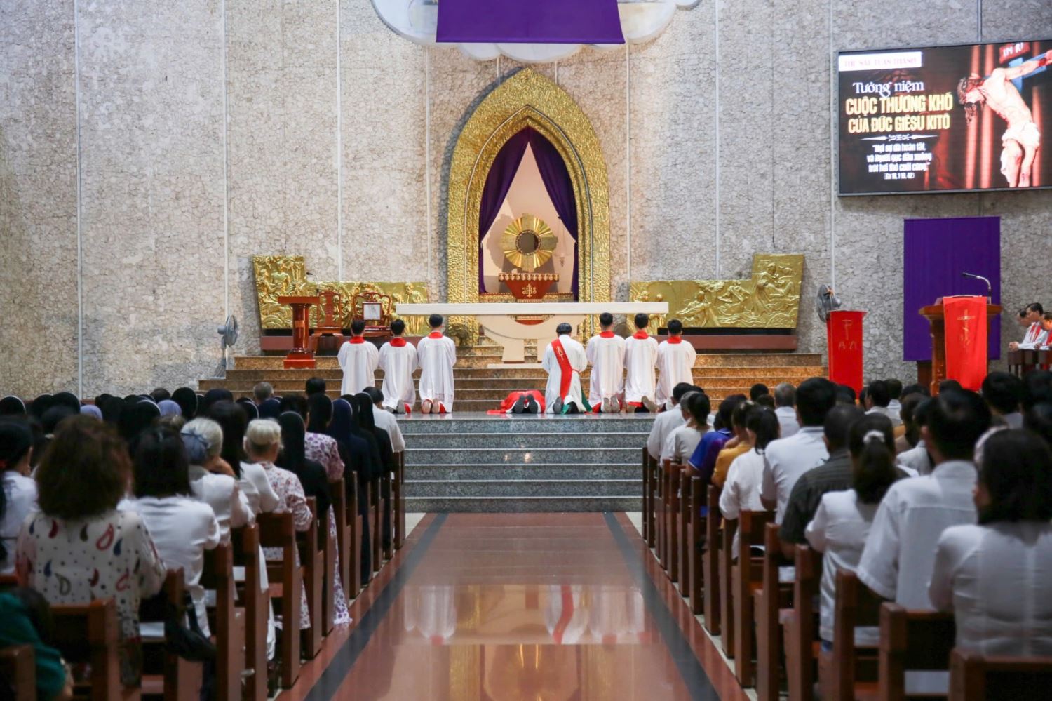 Sau giờ Ngắm Đàng Thánh Giá, cộng đoàn quy tụ trong thánh đường để cử hành nghi thức Suy Tôn Thánh Giá, trung tâm của phụng vụ Thứ Sáu Tuần Thánh.