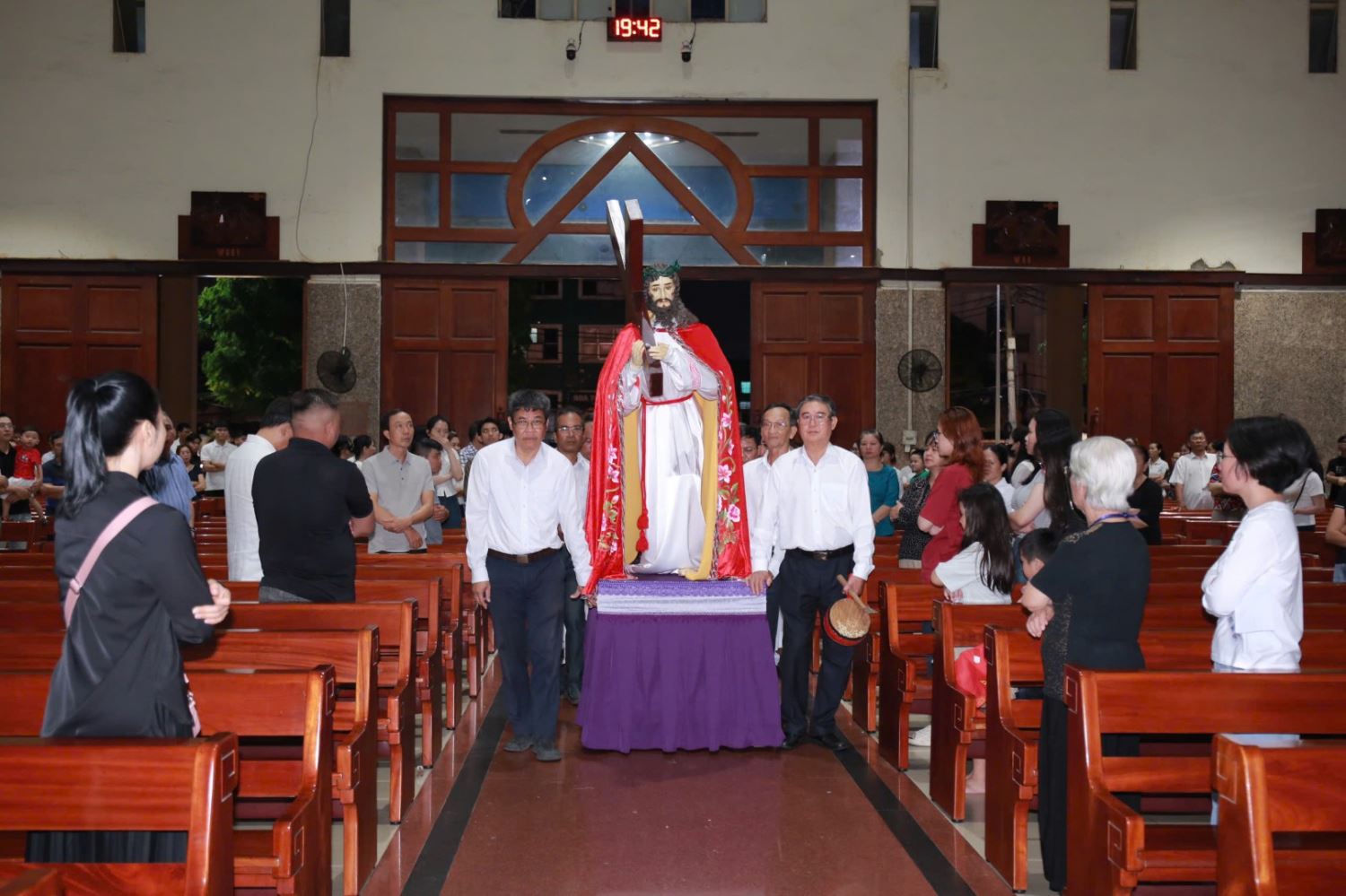 Tiếp đó, cộng đoàn suy niệm cuộc Thương Khó qua các chặng ngắm và ời kinh, do các hội đoàn luân phiên đảm trách.